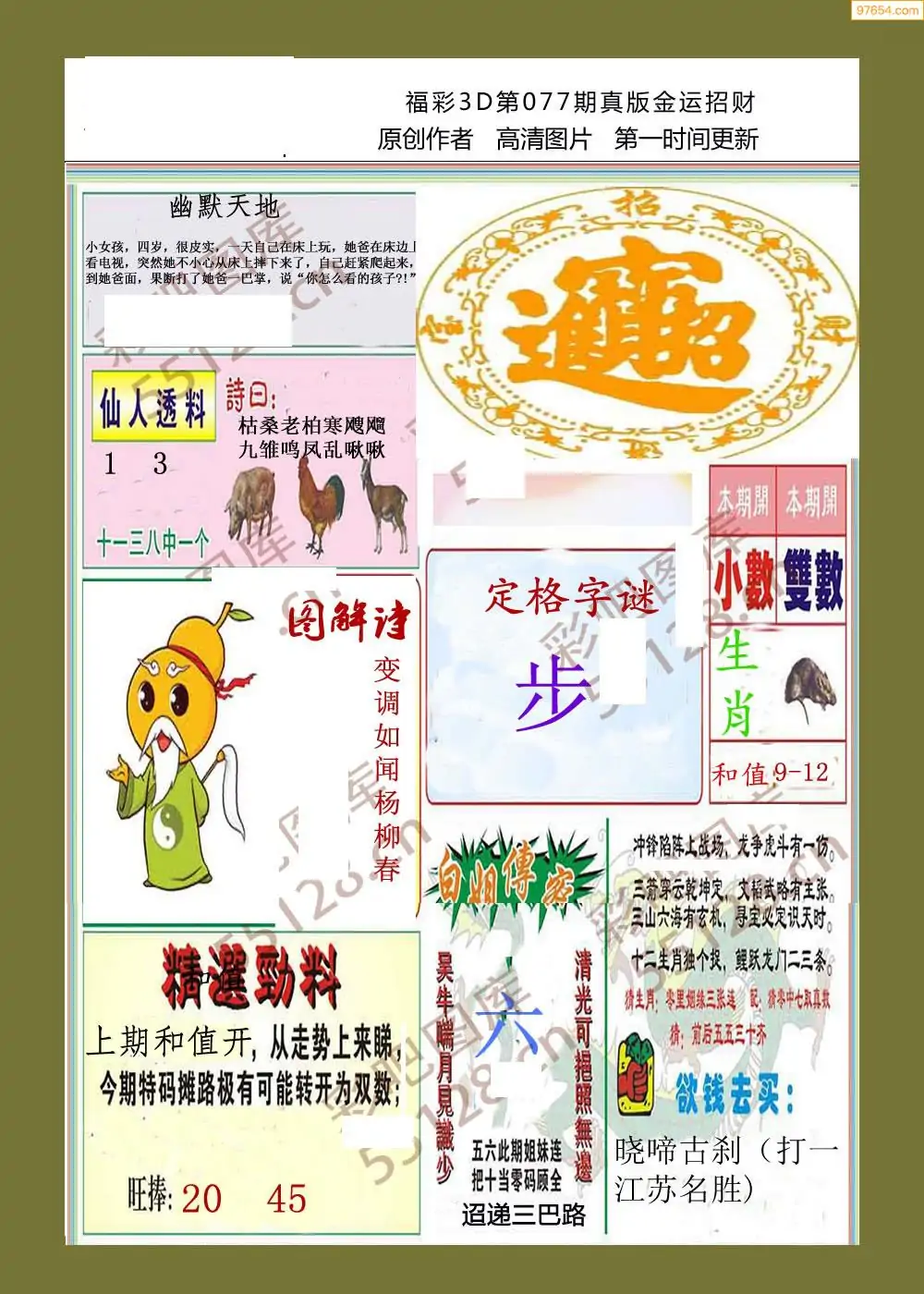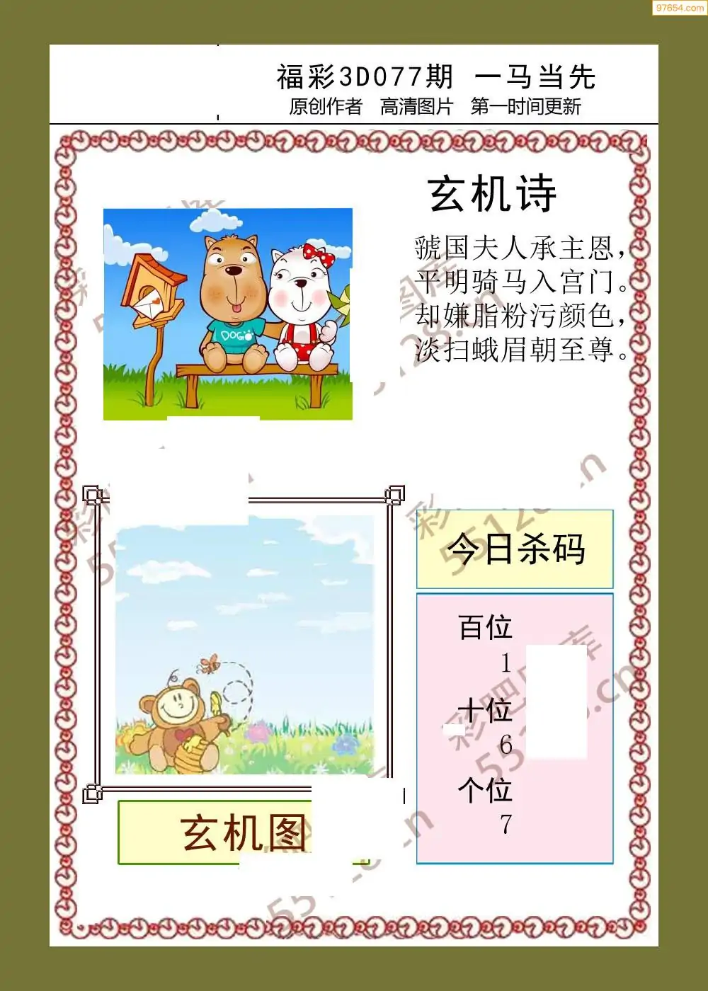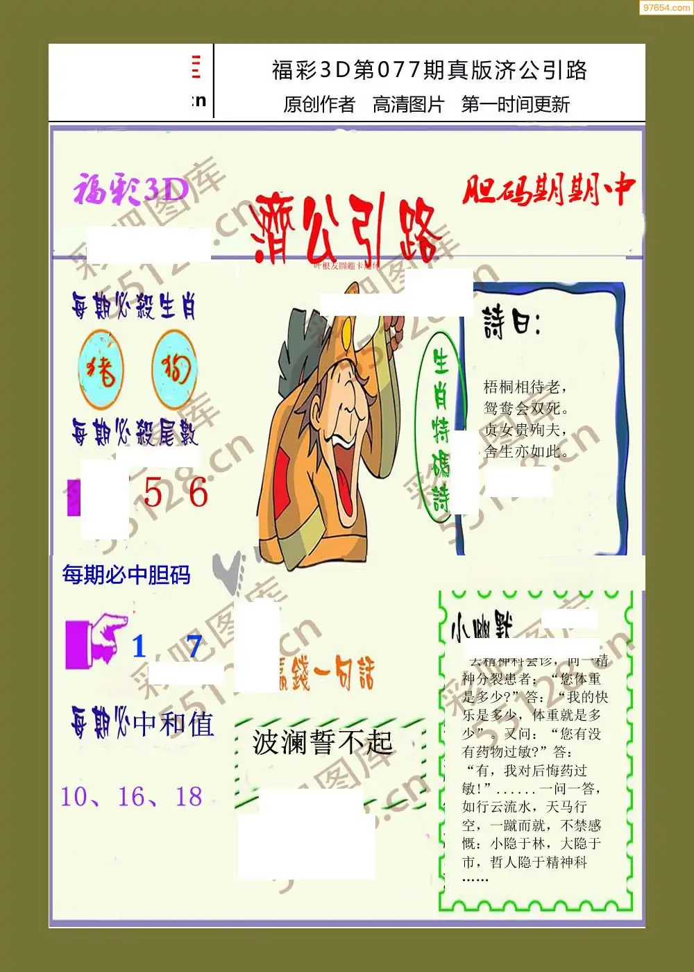 福彩3D077期天牛彩吧套图整合总汇