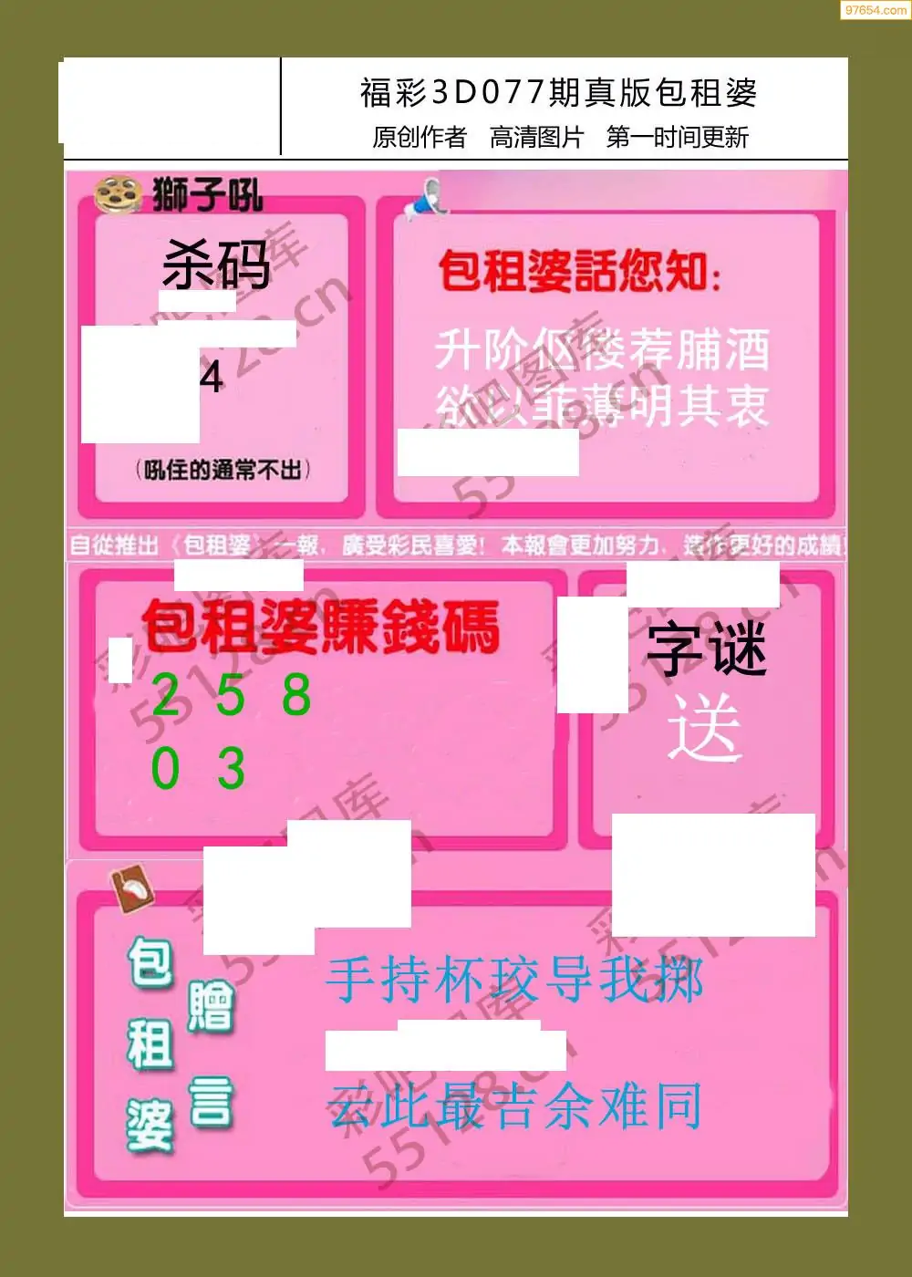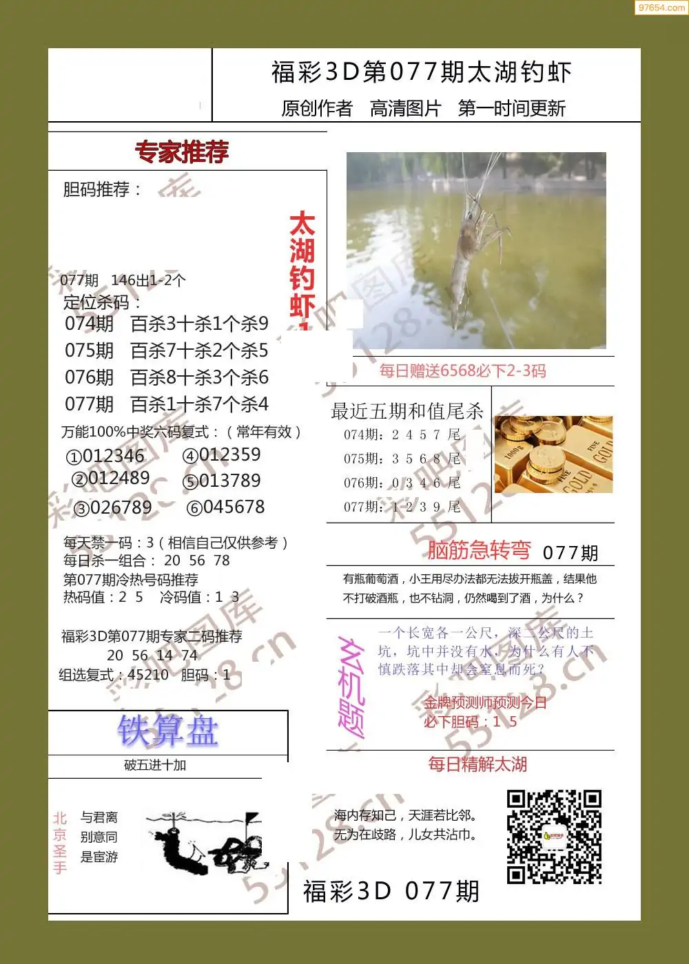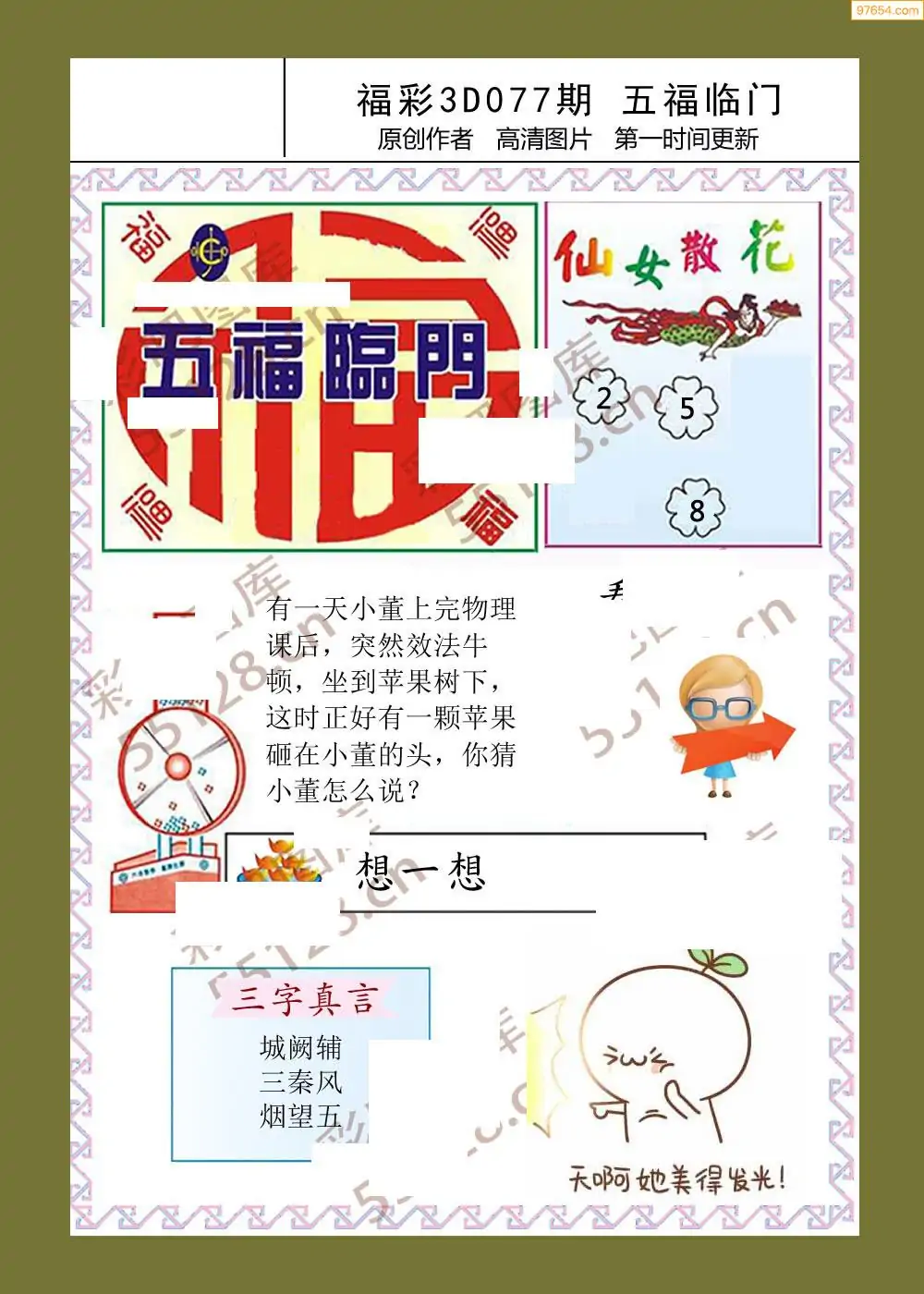 福彩3D077期天牛彩吧套图整合总汇