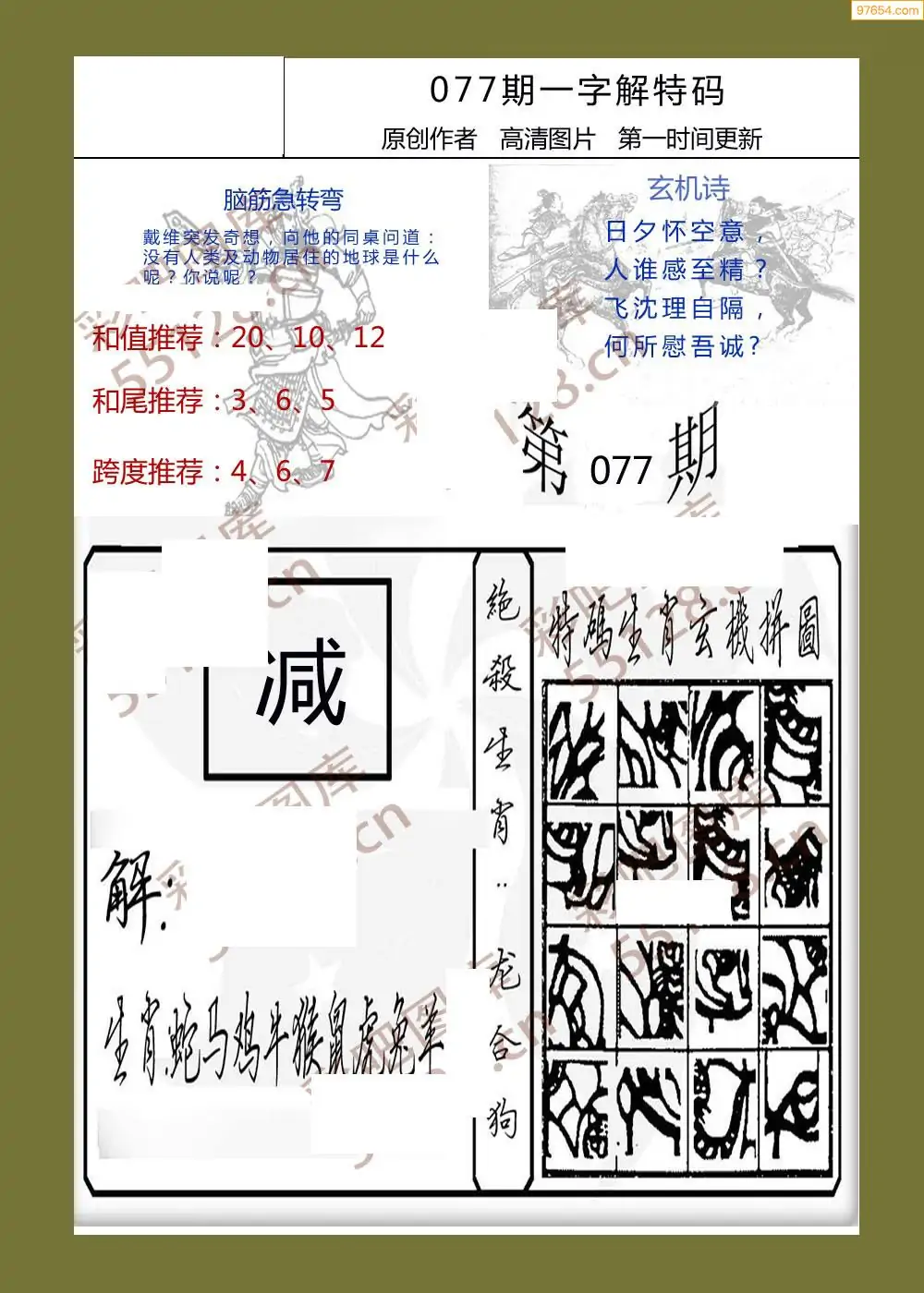 077期福彩天机壁怪字图