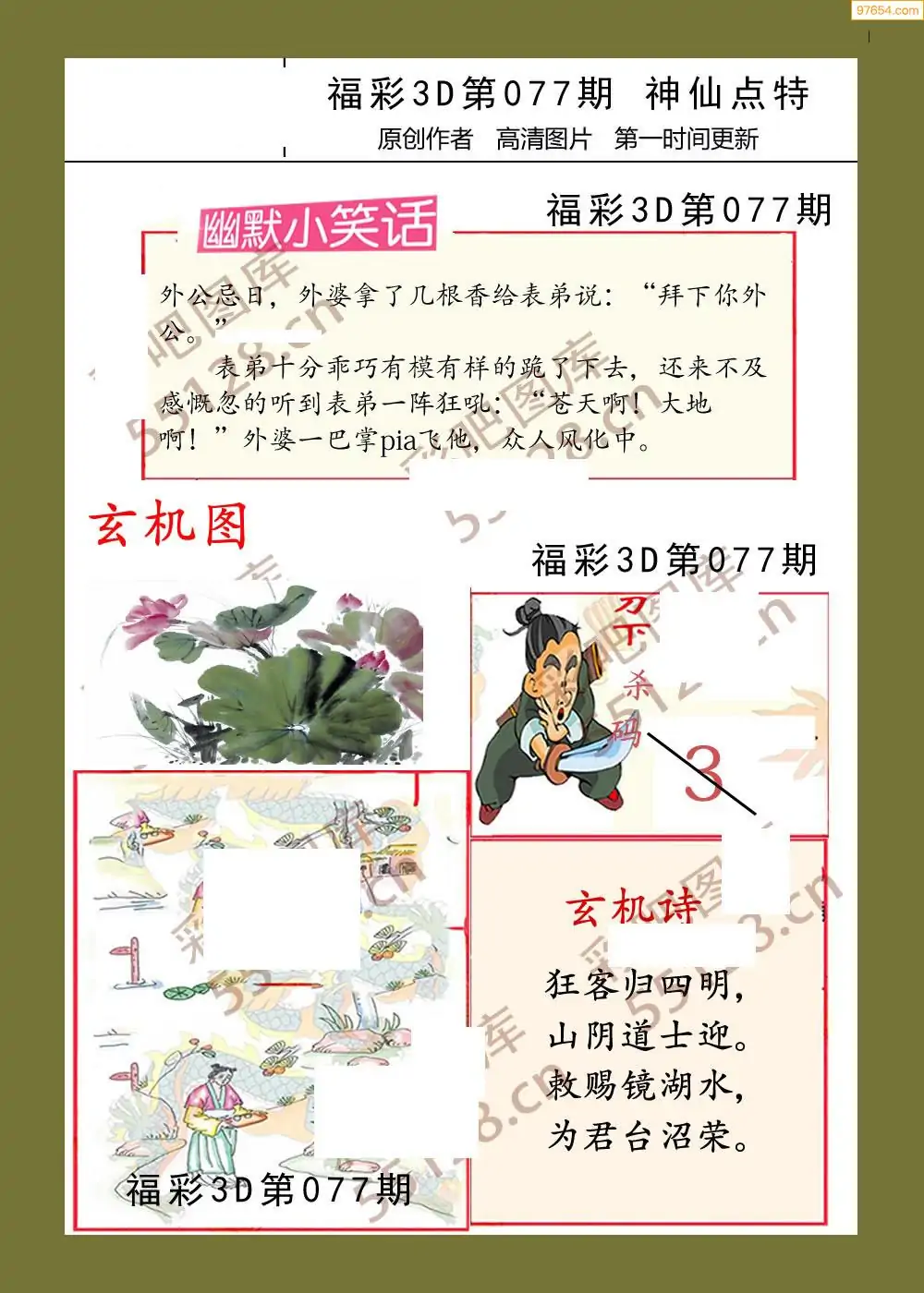 3D26077期本站最新收集精品图汇总(晚版)