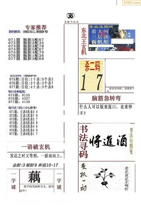 077期真版布衣神算专家推荐