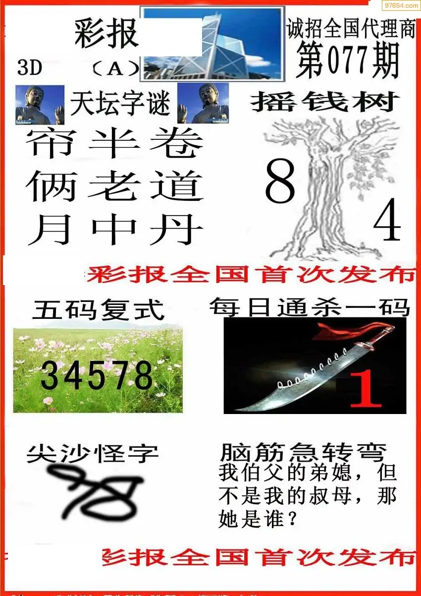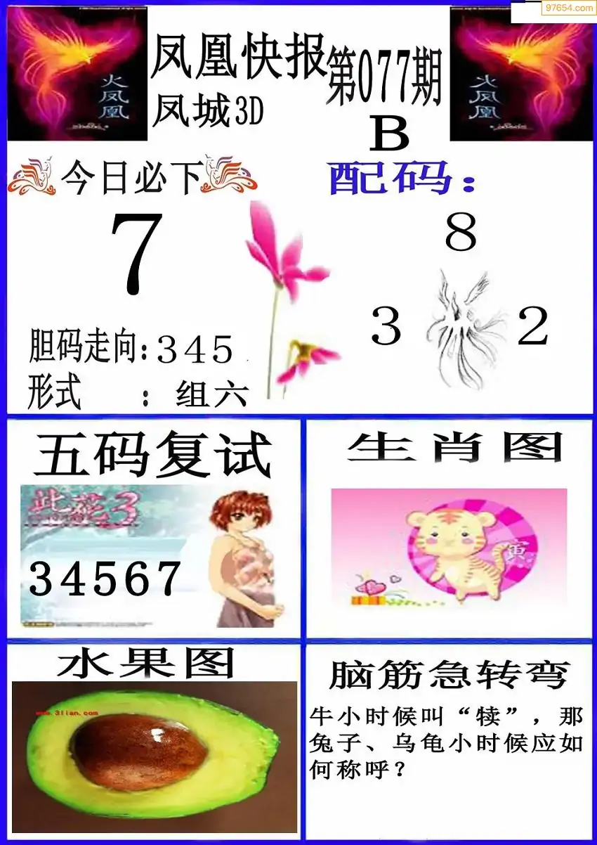 077期3D牛彩预测报+彩吧字谜报