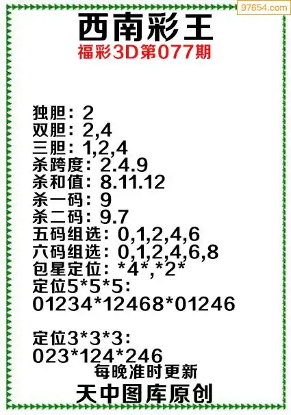 077期原创资料西南彩王当期预测