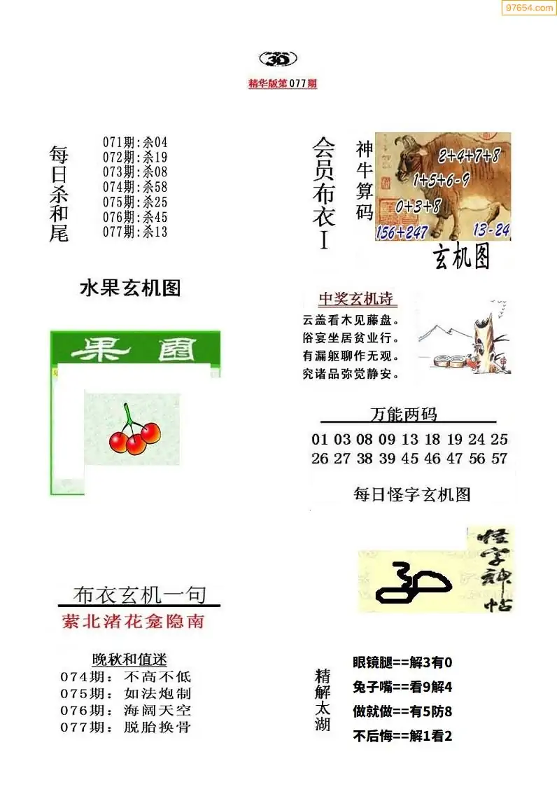 26077期真精华布衣123456(晚间报)