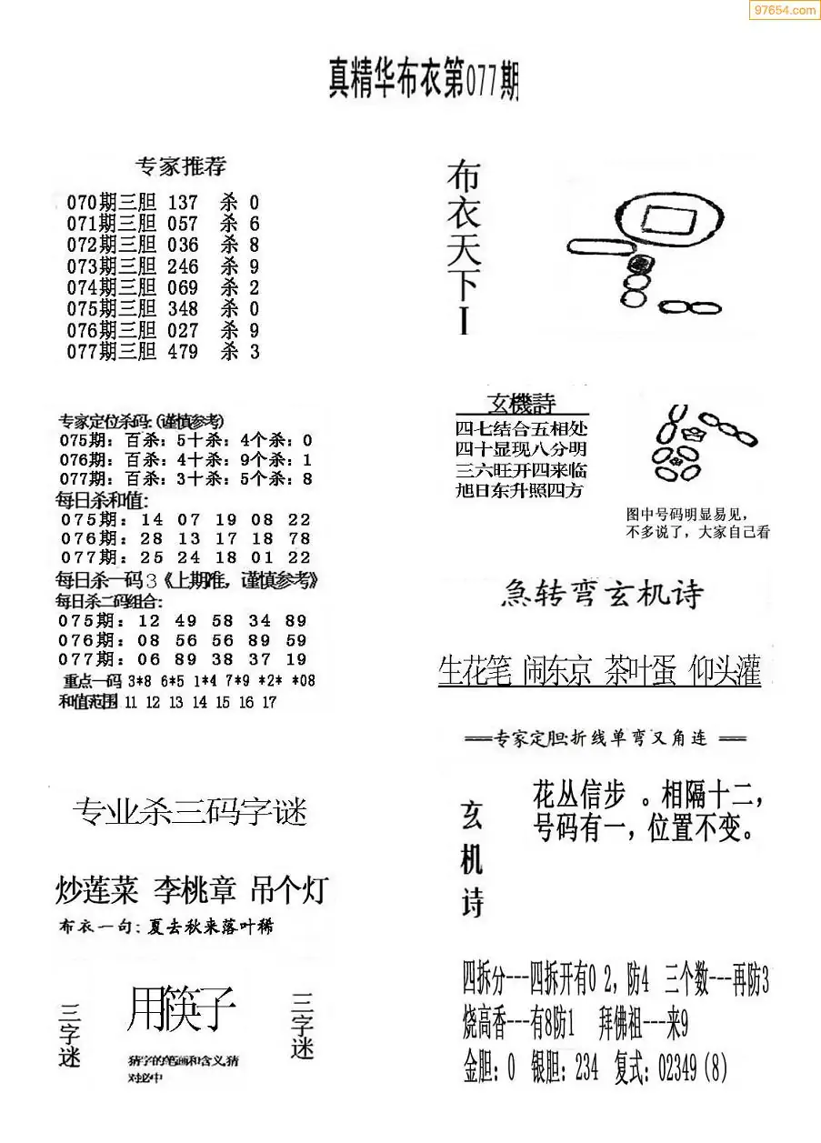 077期真版布衣神算专家推荐