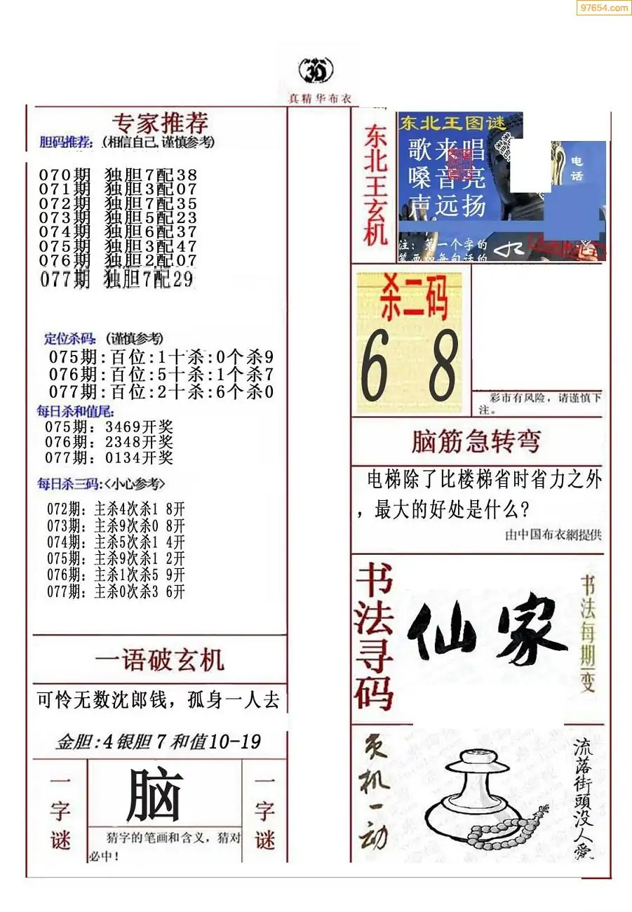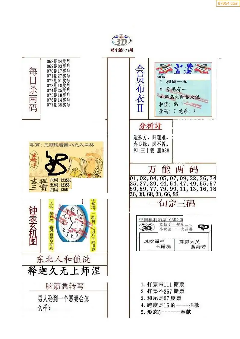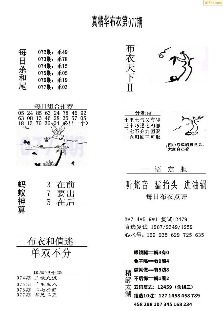 福彩077期3d真精华布衣+布衣早报(转载)