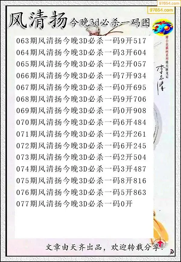 天齐网3d26年077期杀码图 杀:95