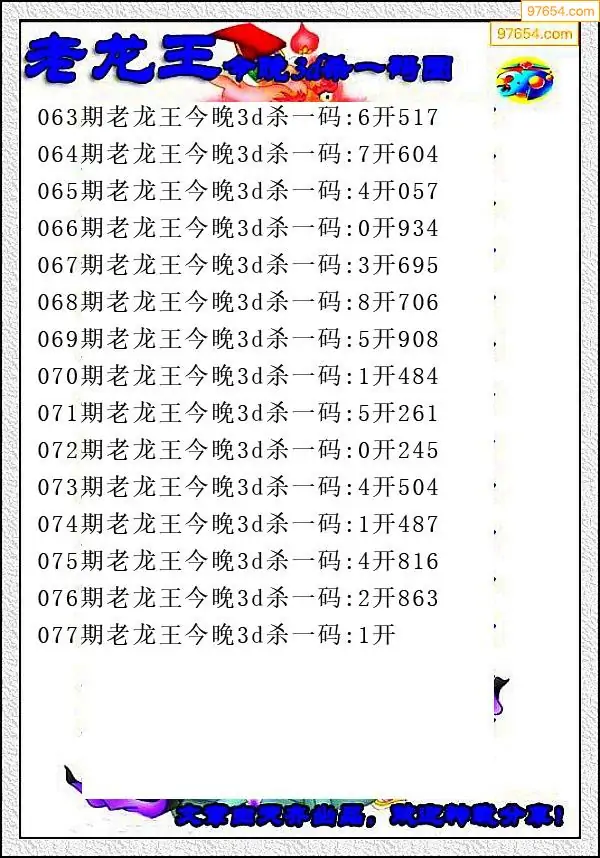 牛彩网077期福彩杀码图汇总 杀:12