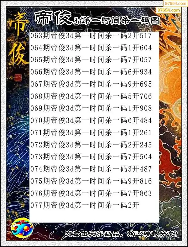 2026076期3D飞龙在天杀两码