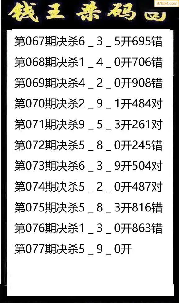 077期97654本站收集杀码出号预测