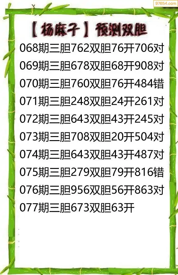 26077期杨麻子_福彩胆码计算方法