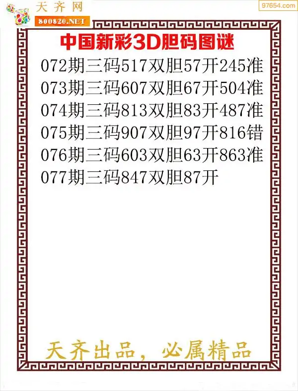 天齐网3d26年077期胆码图 胆:83