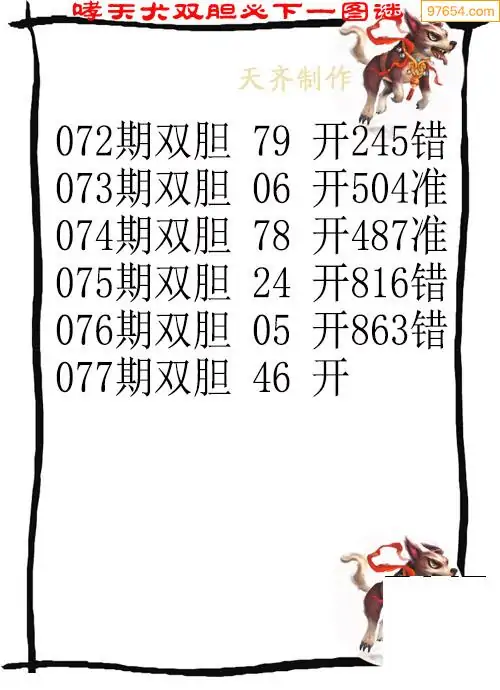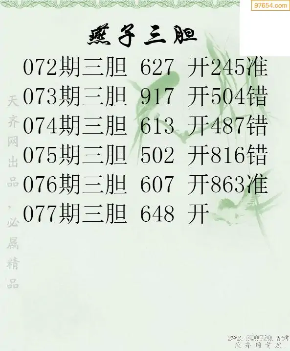 077期97654本站收集胆码出号预测