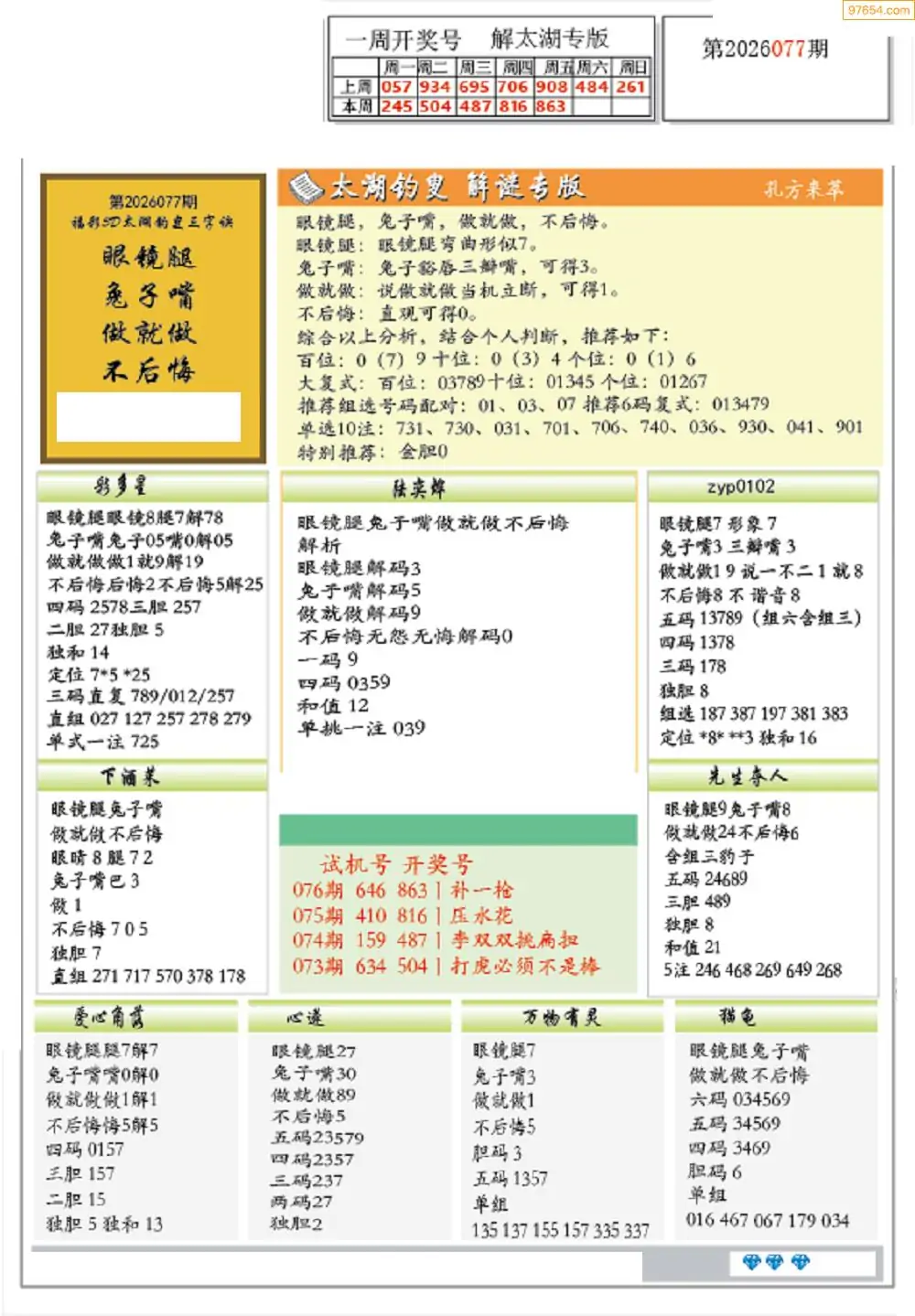 26年079期3D各板块资料整合汇总