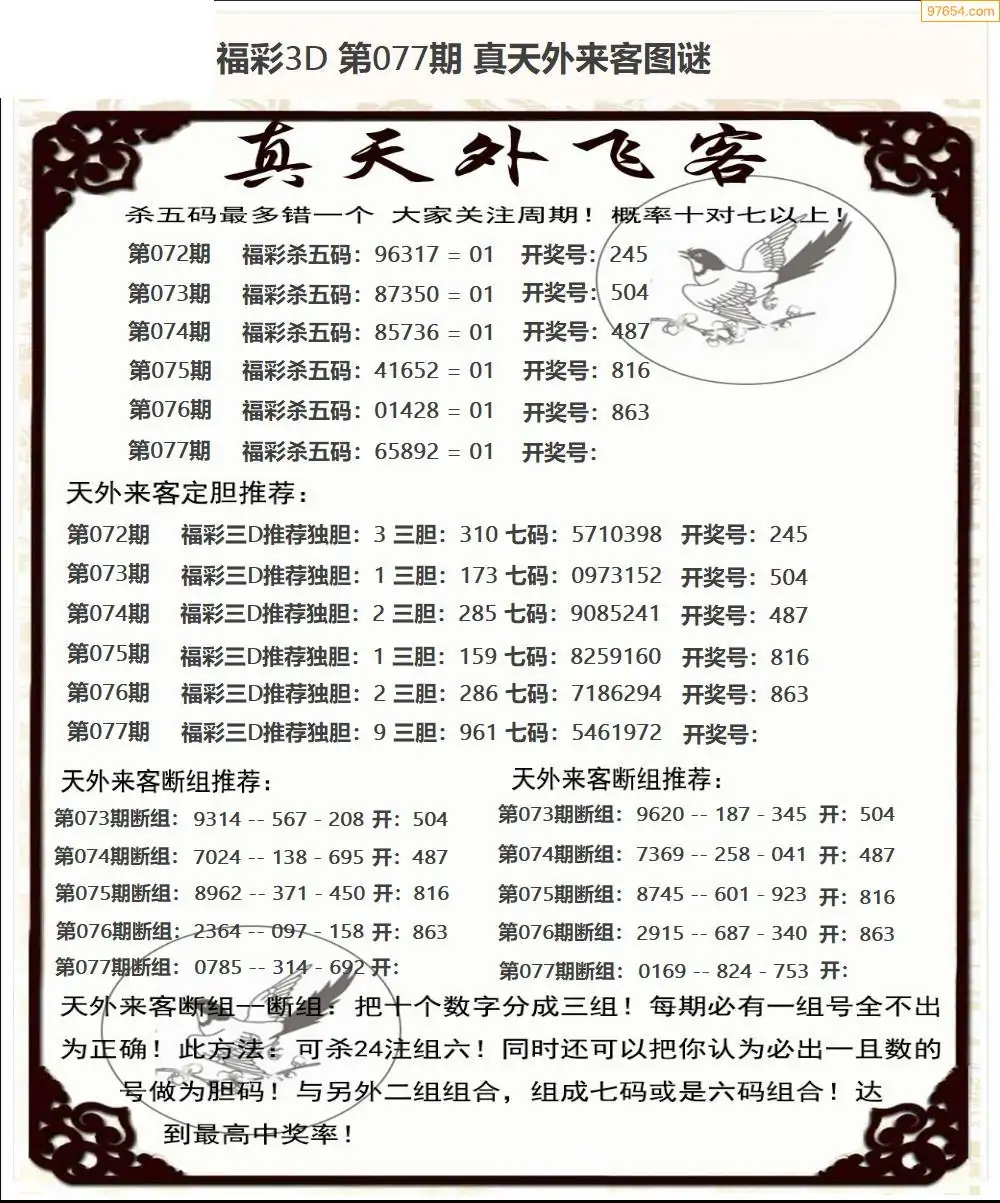 26年077期福彩3d真天外飞客图