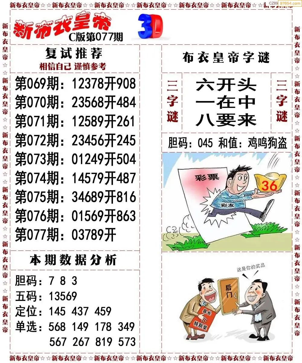 26077期3d新布衣皇帝早间四版