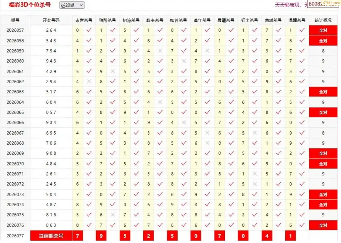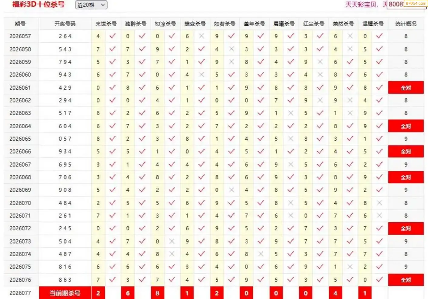 26077期杀胆王3D杀码