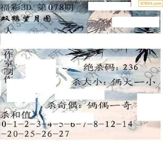 2026078期彩吧全图3d图谜
