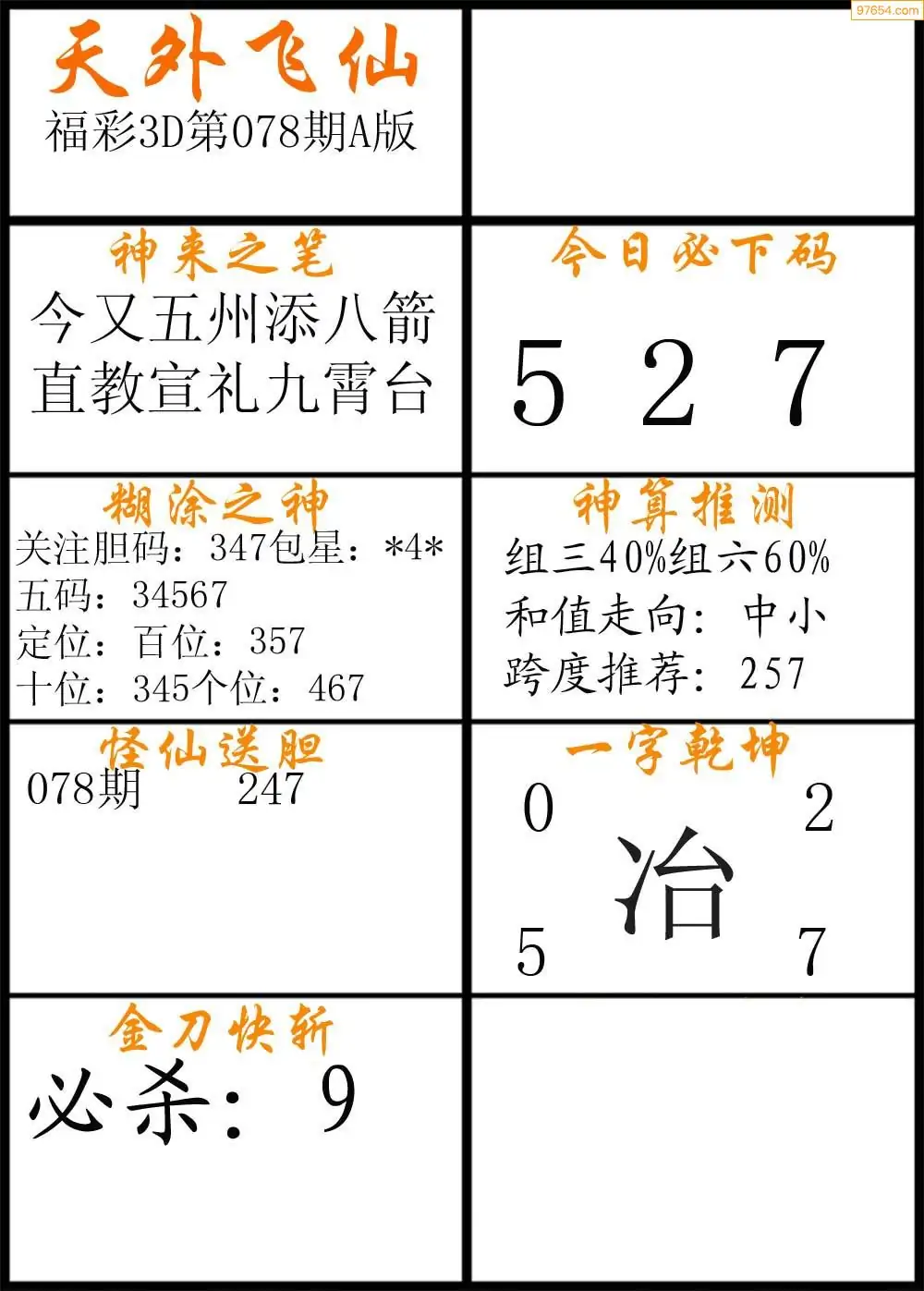 078期福彩3d天外飞仙A版