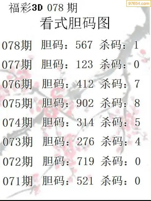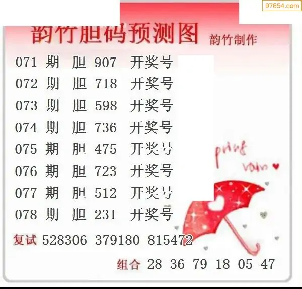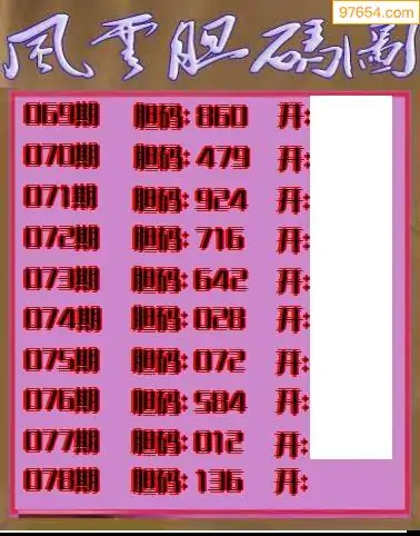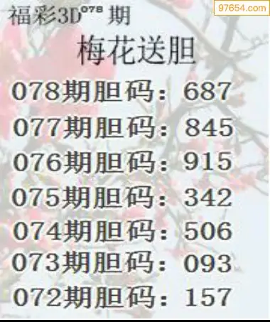078期97654本站收集胆码出号预测