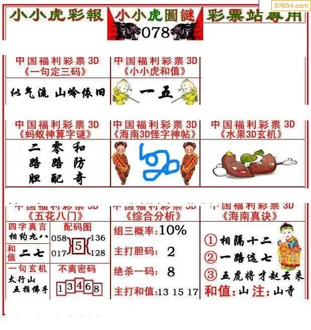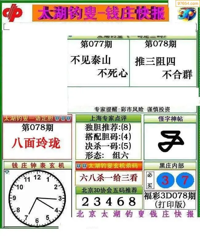 078期3D牛彩预测报+彩吧字谜报