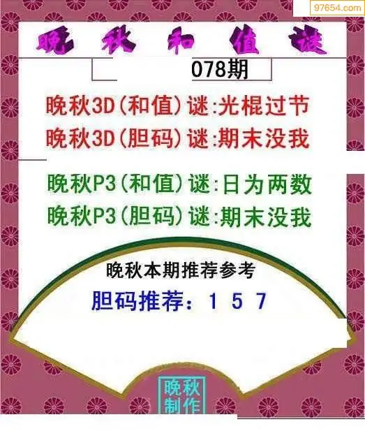 26078期晚秋和值谜胆码推荐