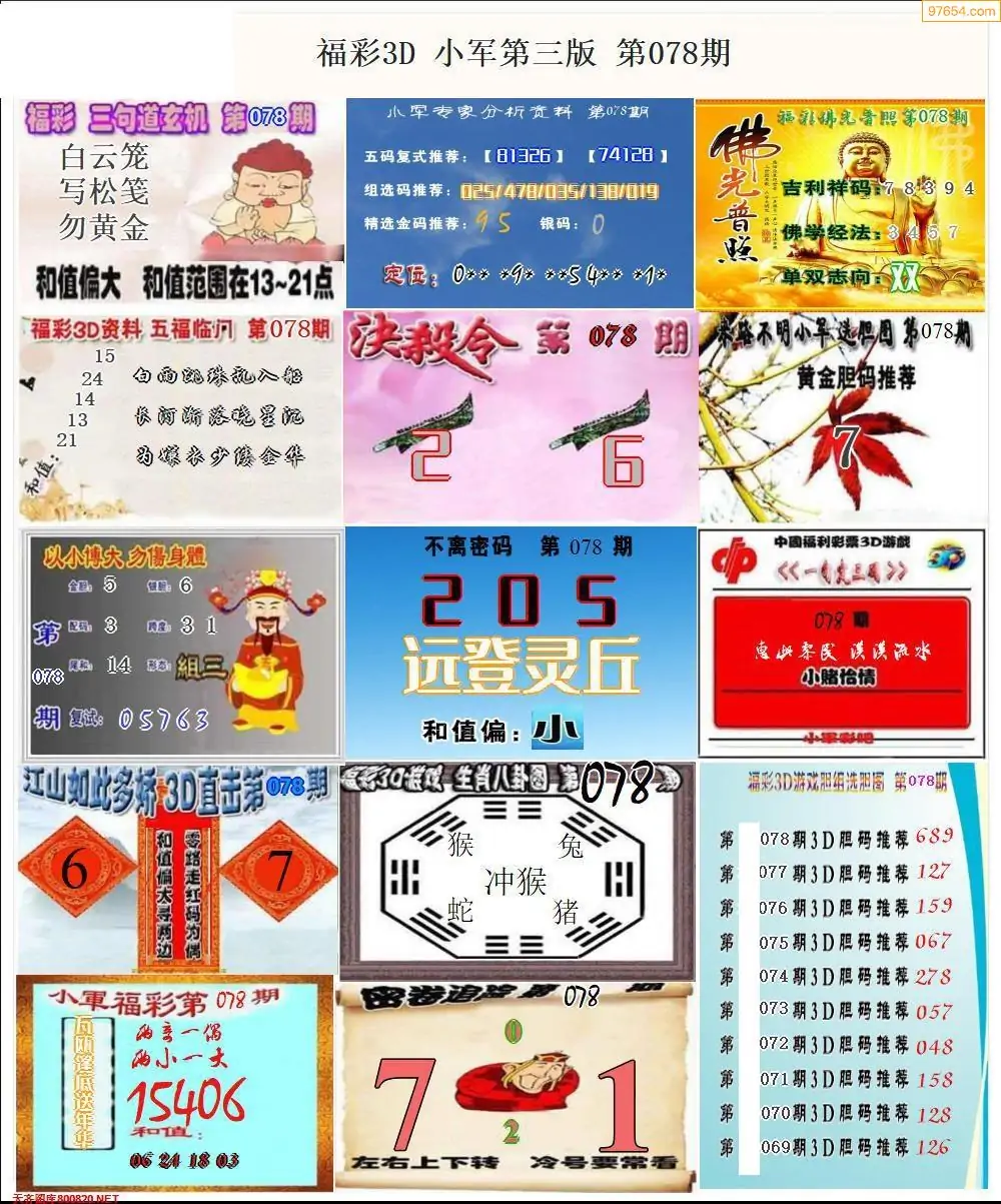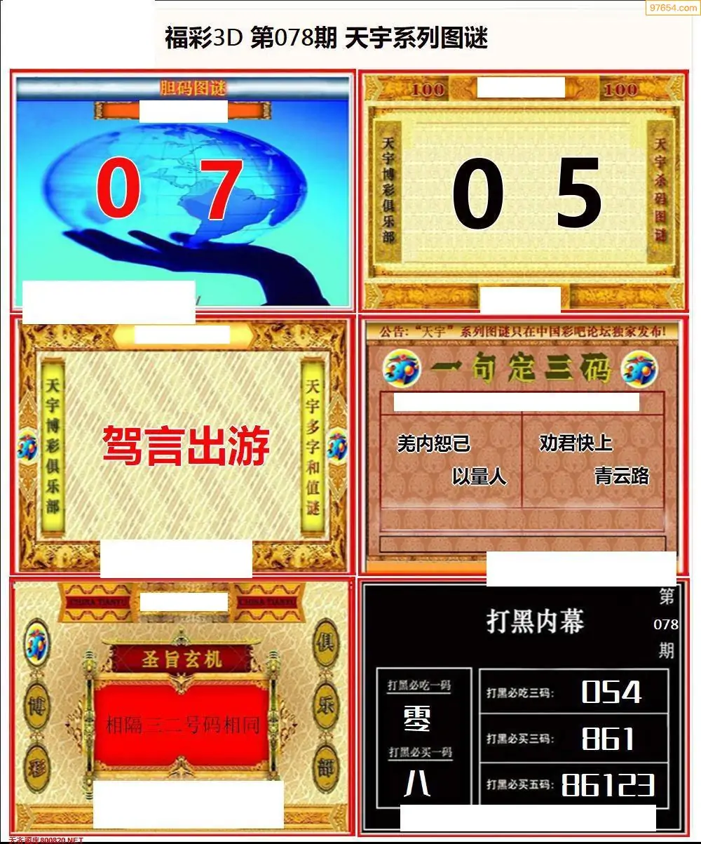 福彩3D078期天牛彩吧套图整合总汇