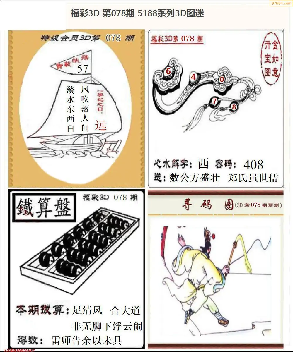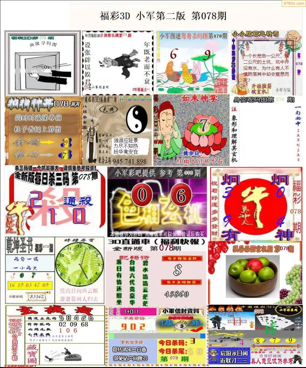 078期3D牛彩预测报+彩吧字谜报