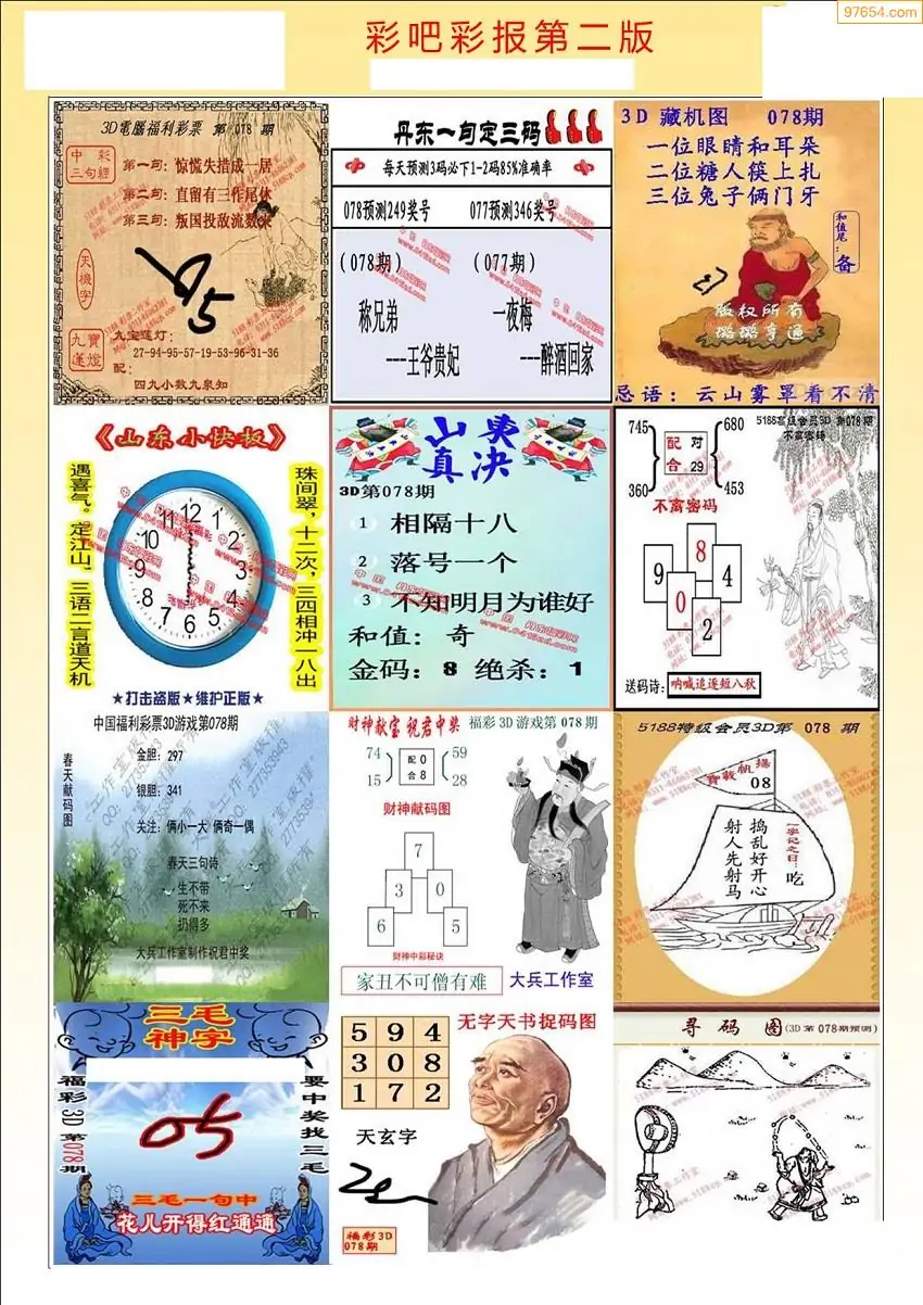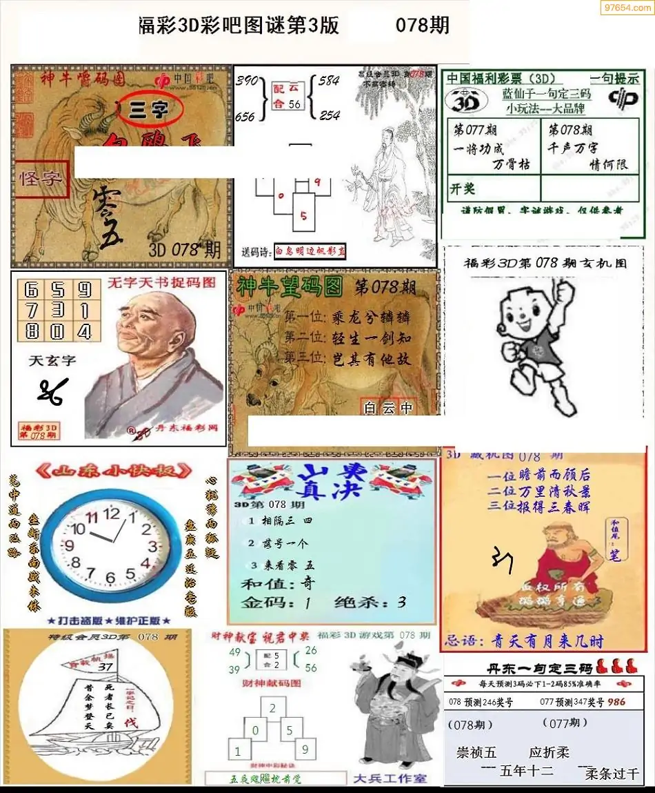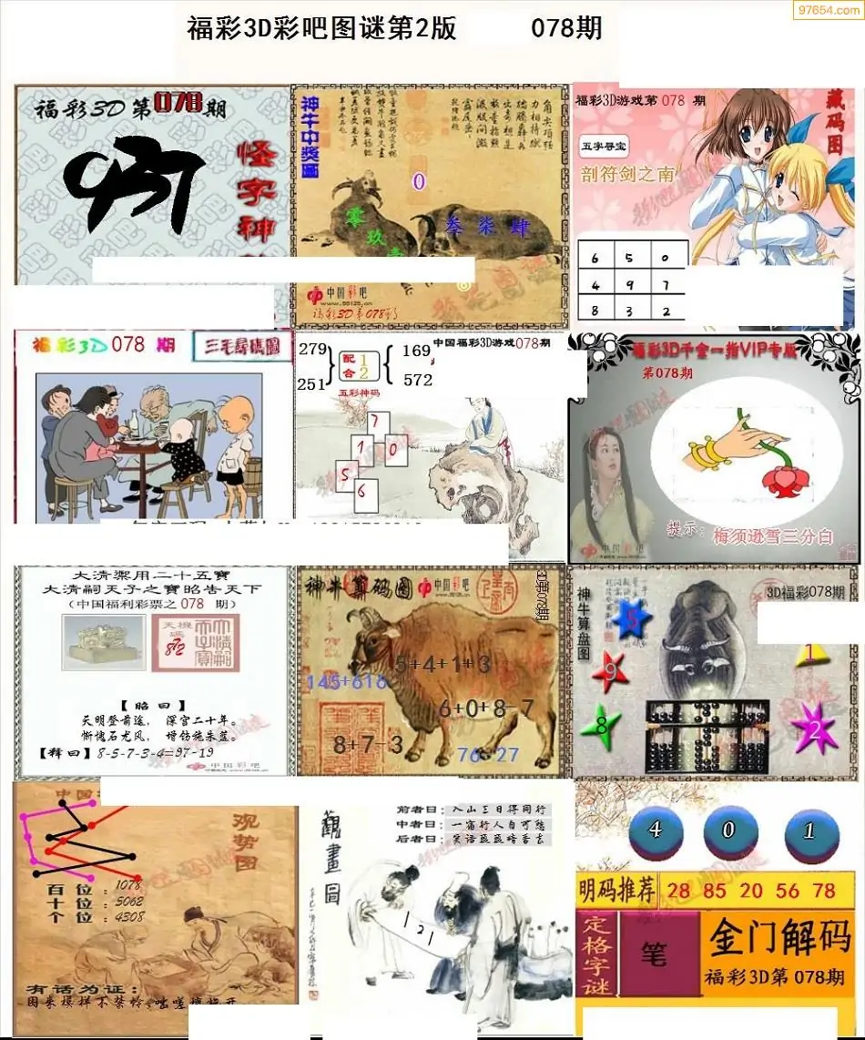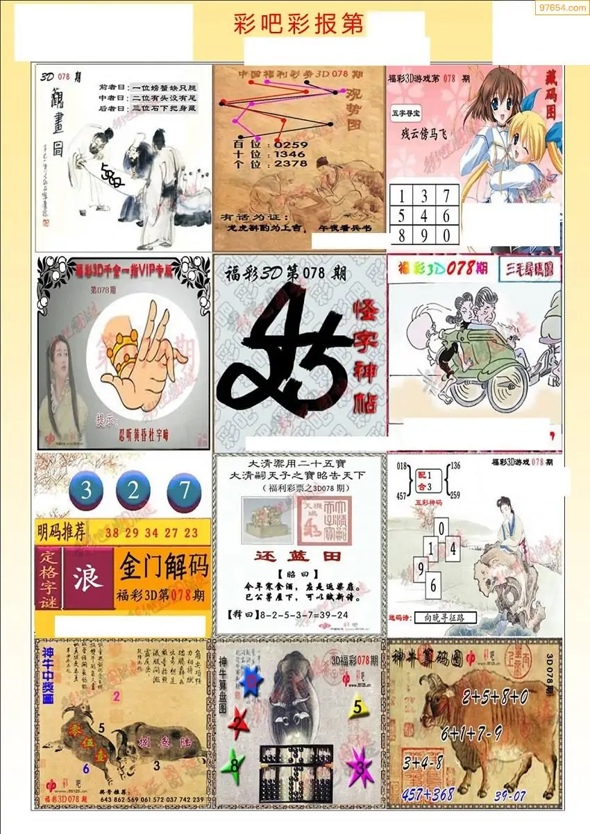 078期3D牛彩预测报+彩吧字谜报