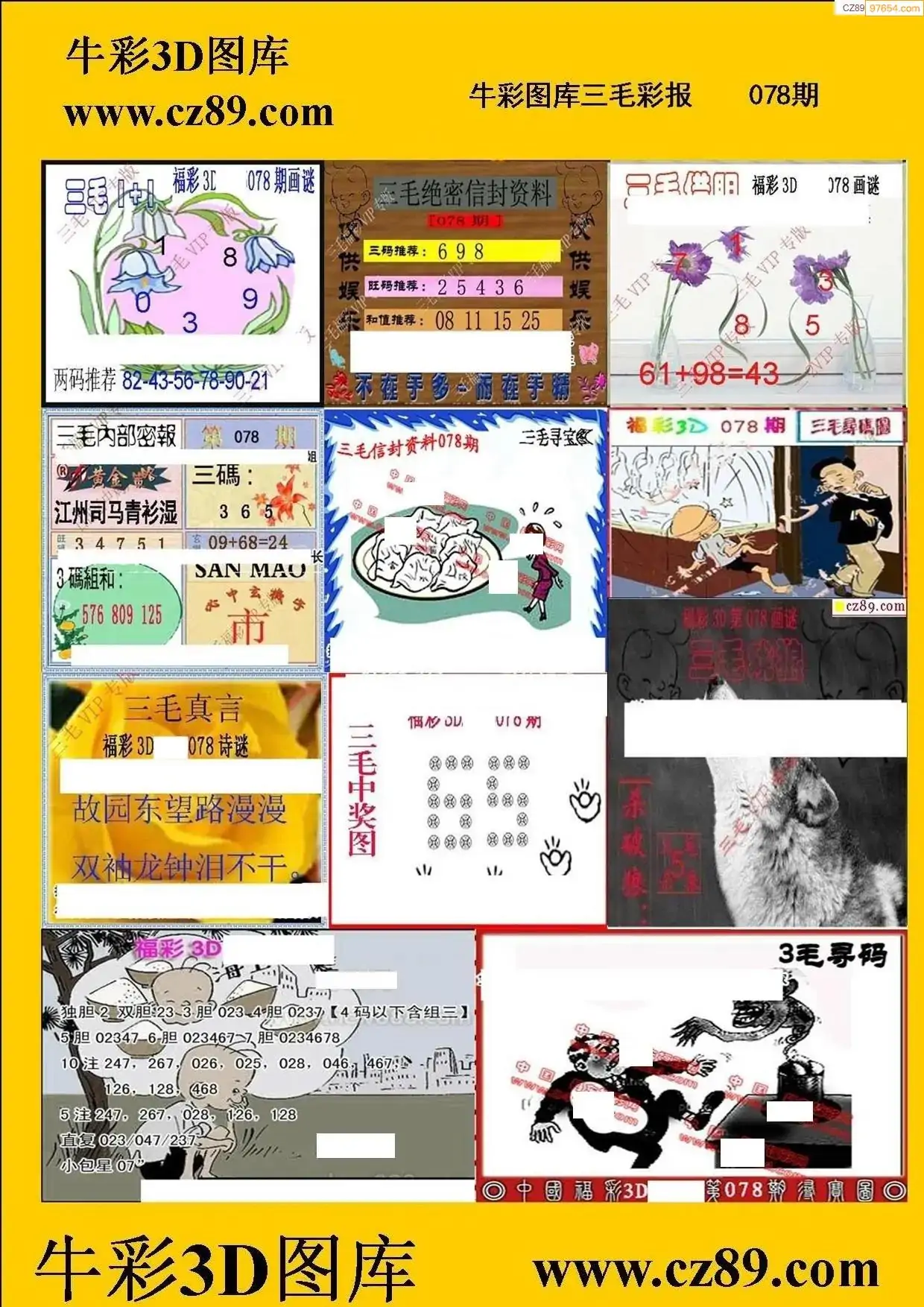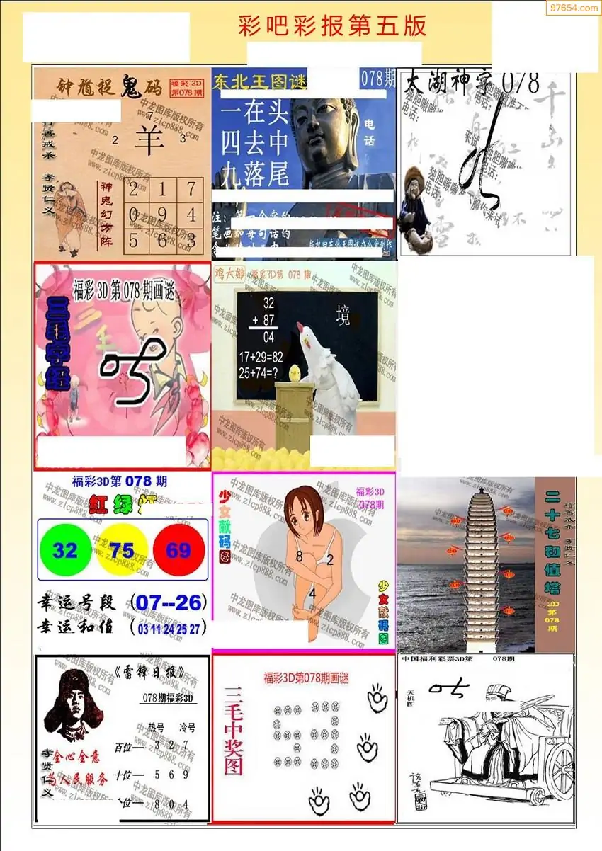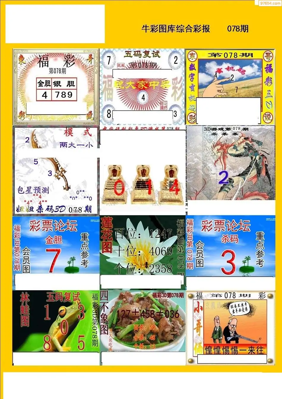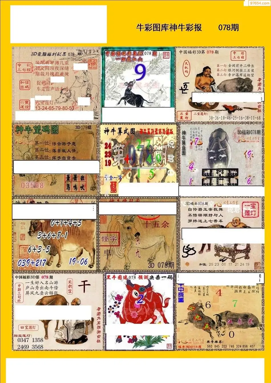 078期3D牛彩预测报+彩吧字谜报