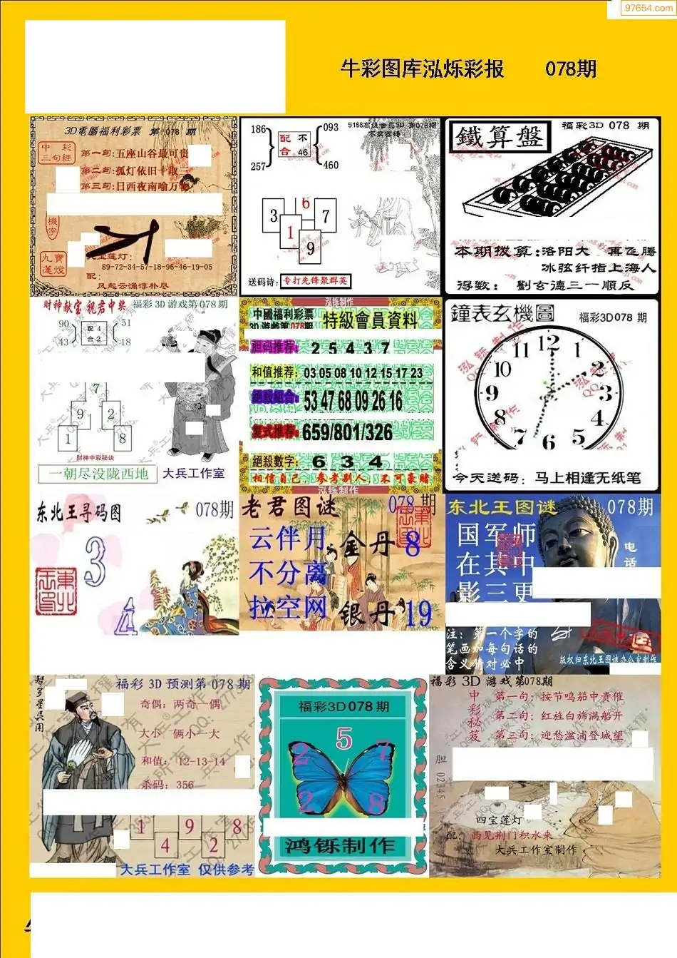 福彩3D078期天牛彩吧套图整合总汇