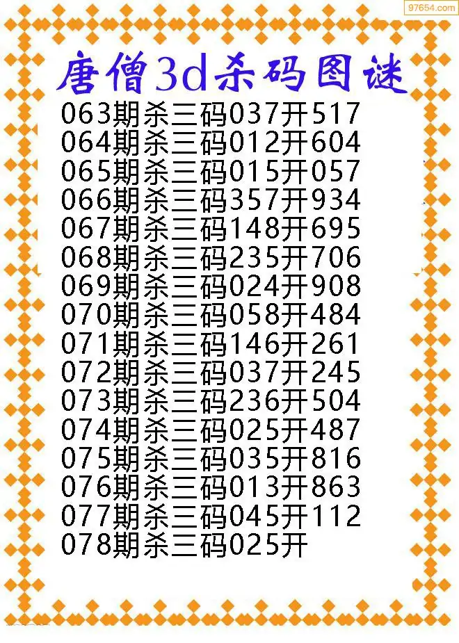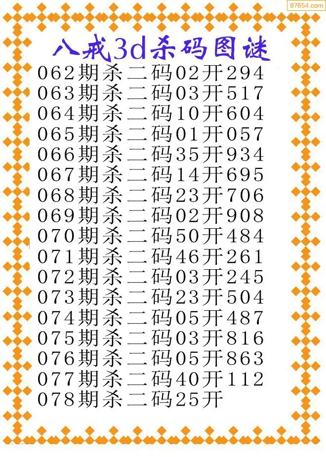078期97654本站收集胆码出号预测