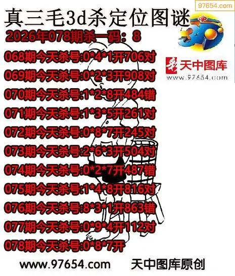 2026078期彩彩网3d原创图迷搜集(天中整理)