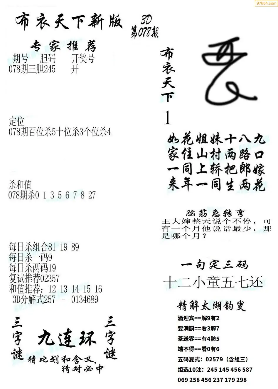 (3)2026078期3D预测总汇全图_福彩3d图谜字谜总汇