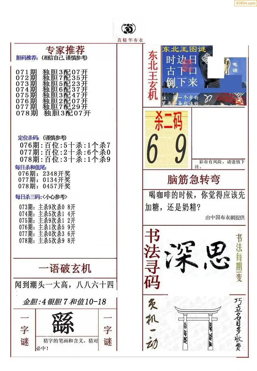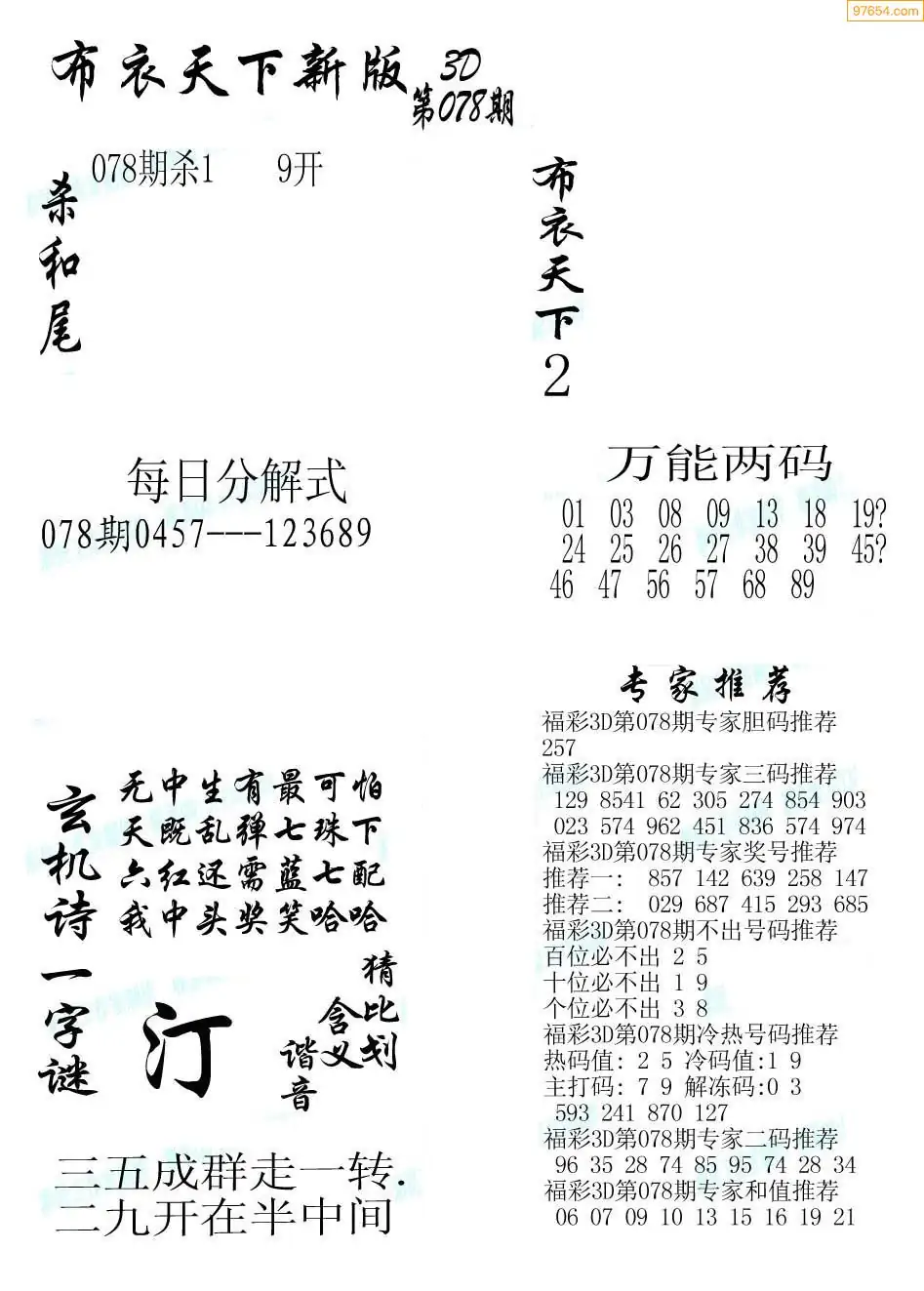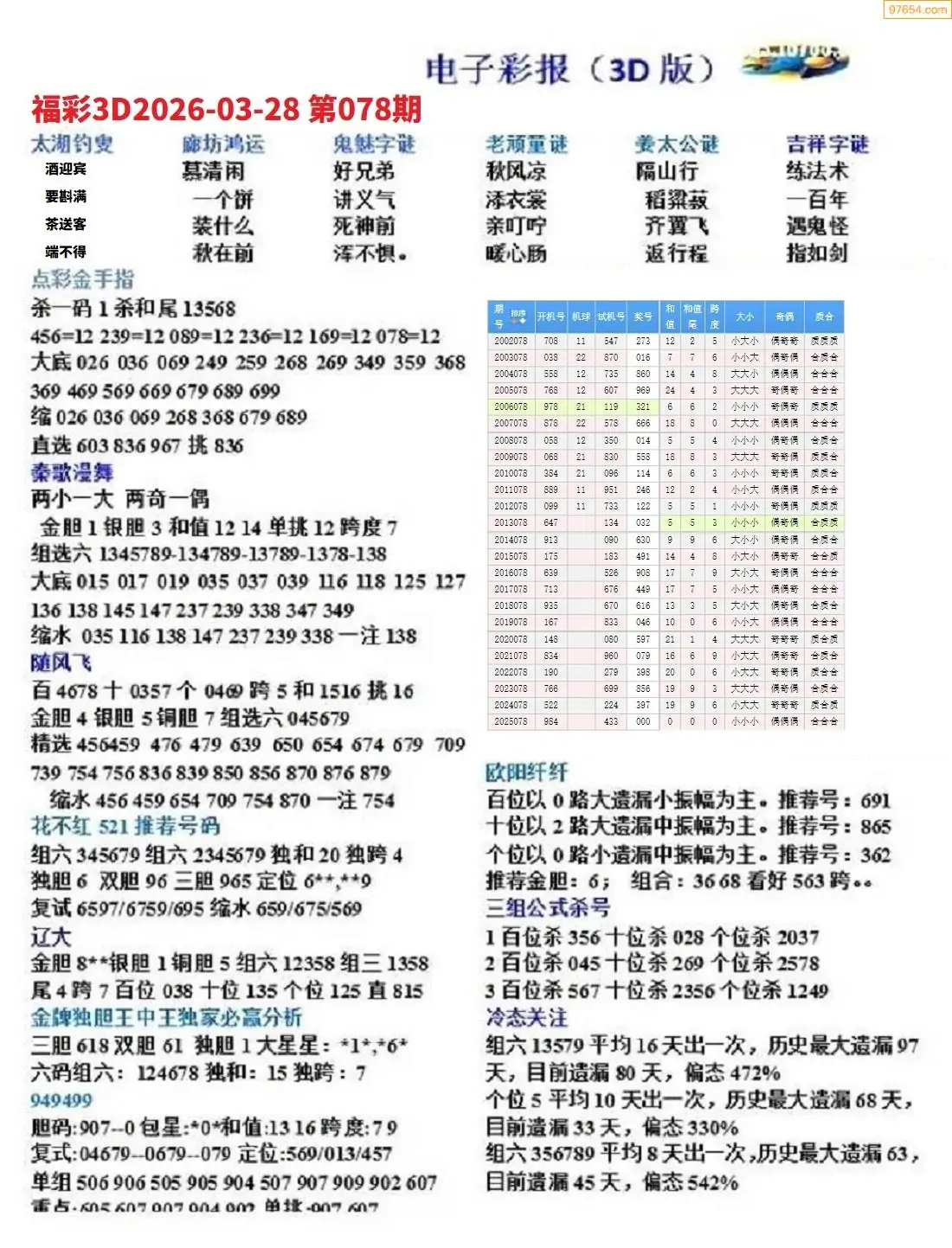 (2)26年078期本期3d图迷汇总_福彩3D图谜总汇图