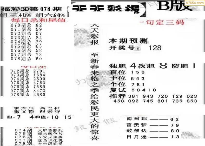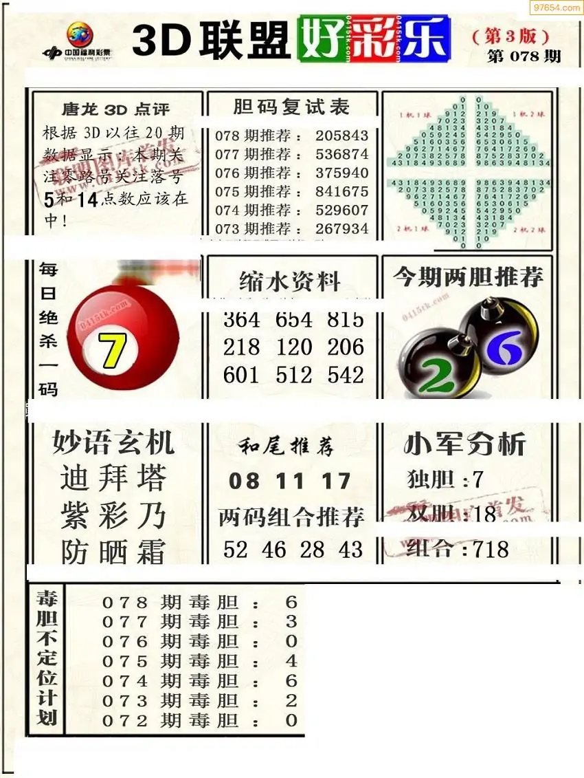 (8)26年078期今日3d各类彩报汇总