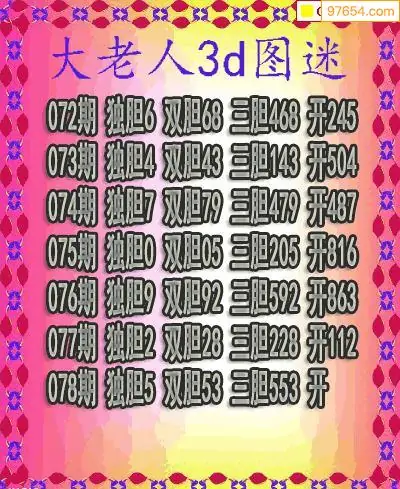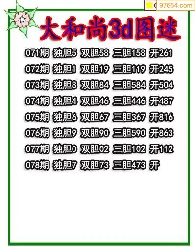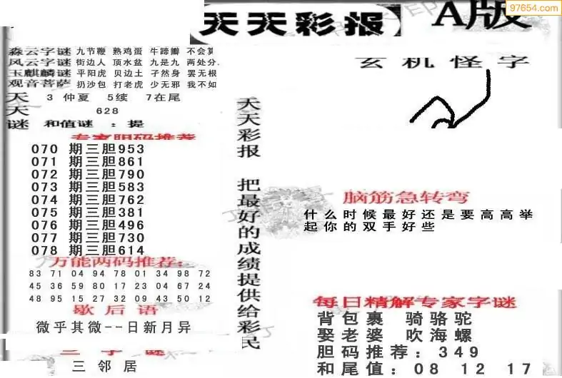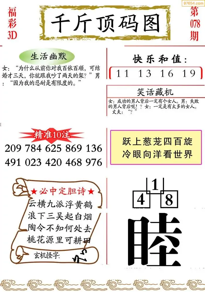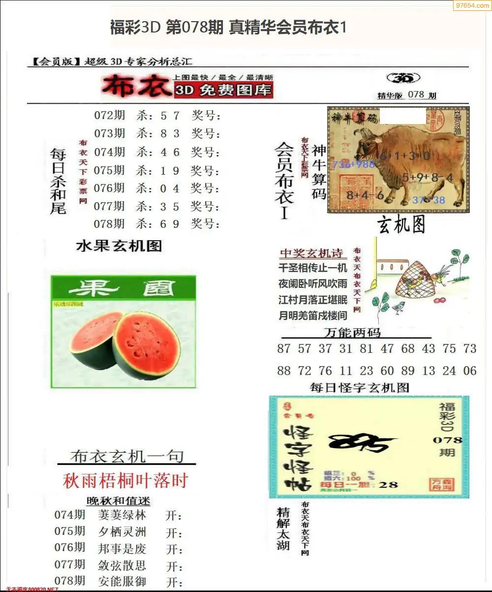 (3)2026078期3D预测总汇全图_福彩3d图谜字谜总汇