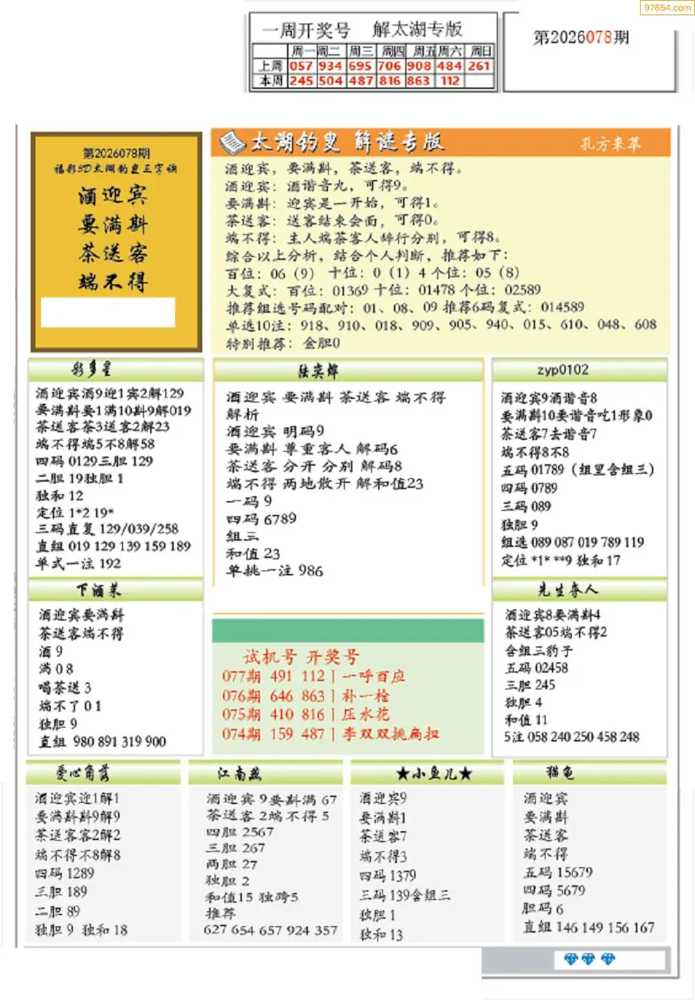 26年078期3D各板块资料整合汇总