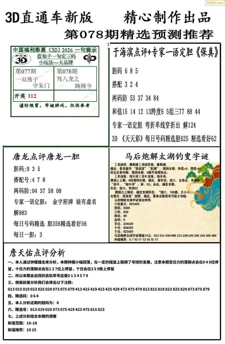 26年078期3D各板块资料整合汇总