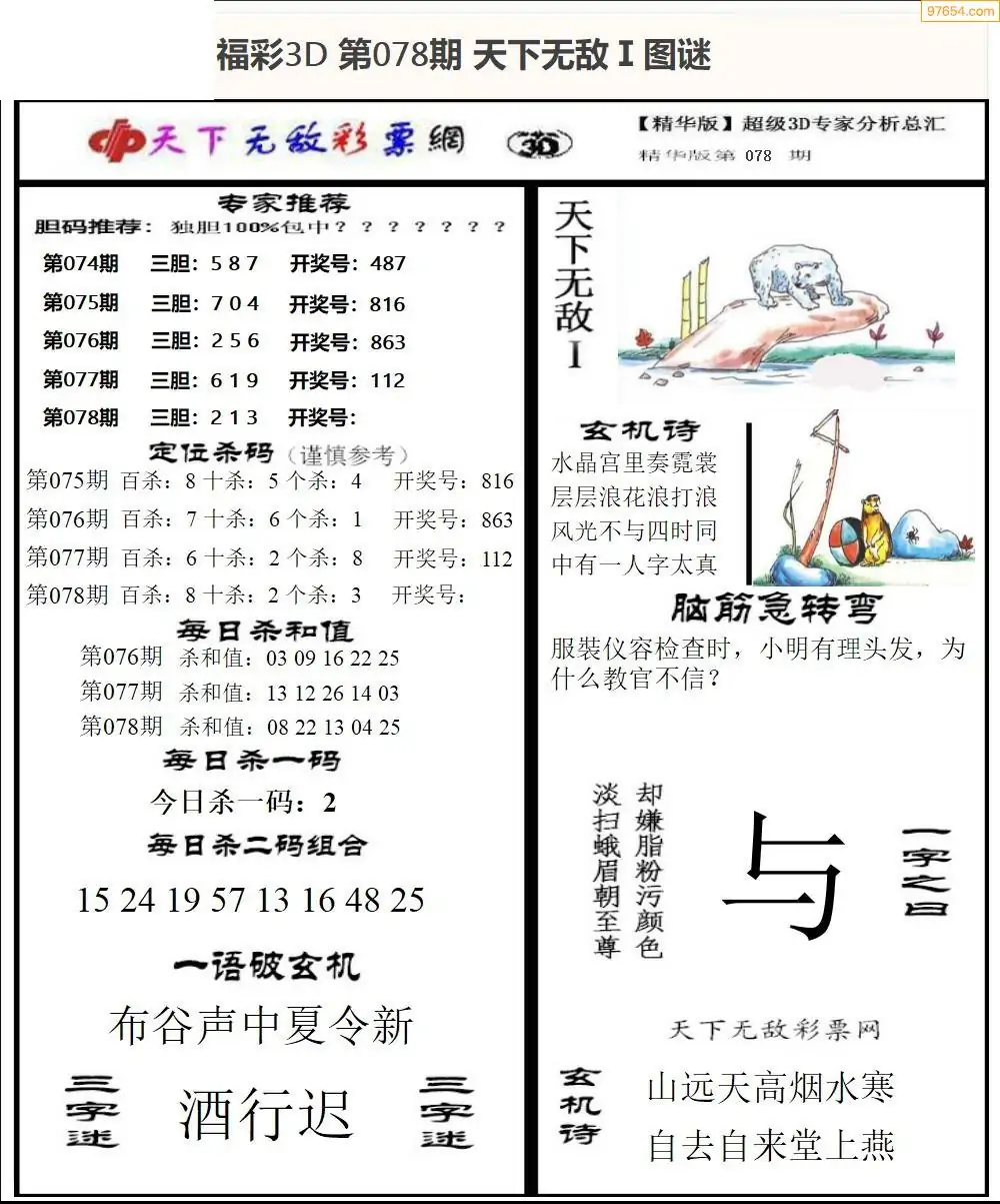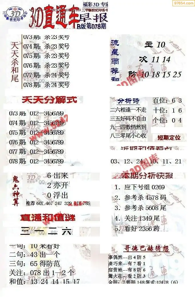 26年078期3d选号彩报图谜画谜