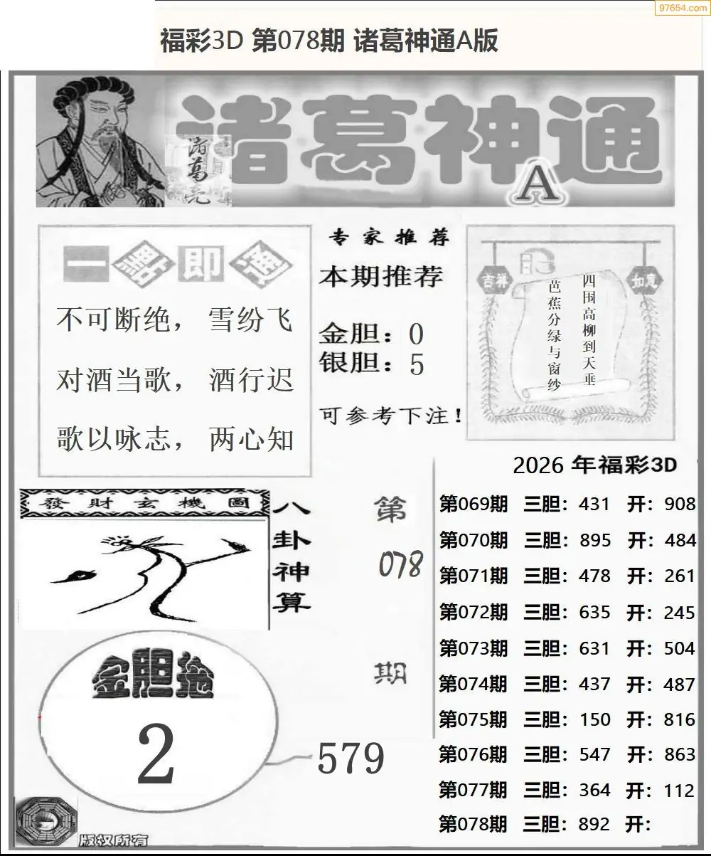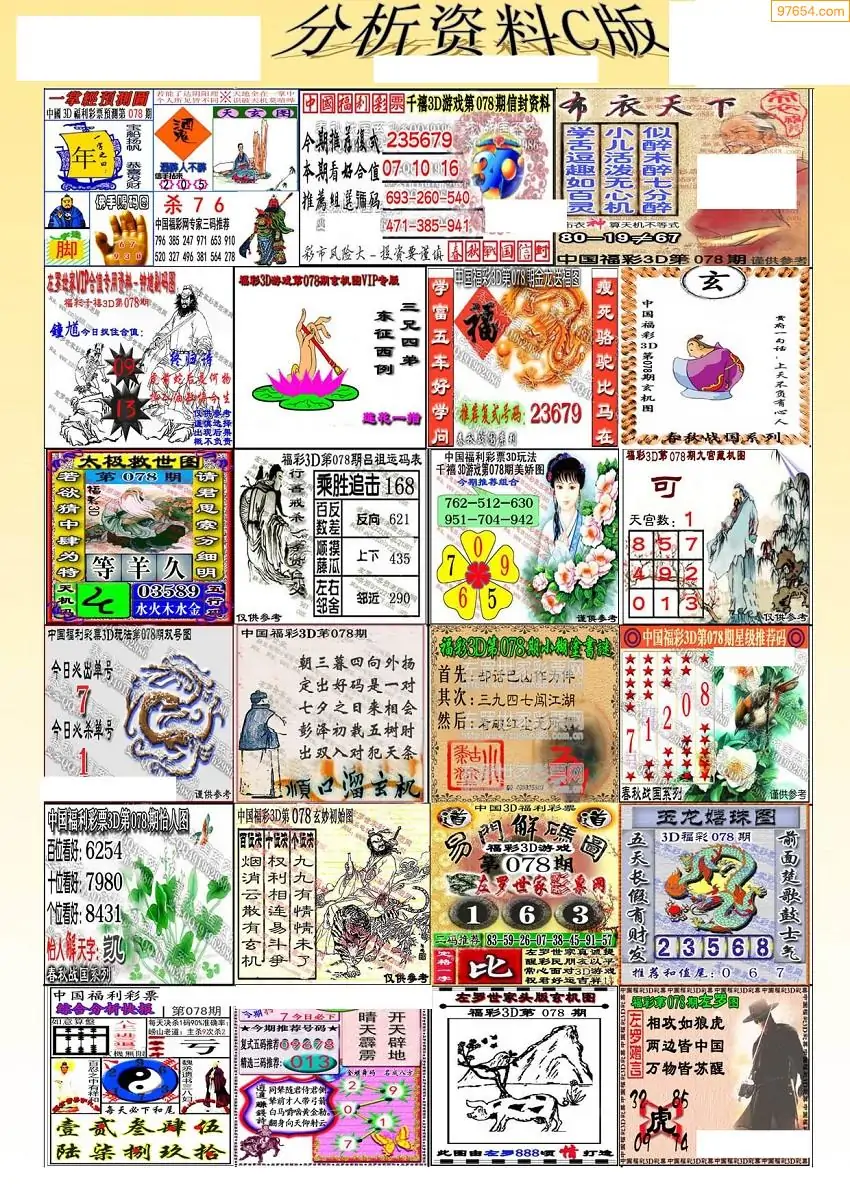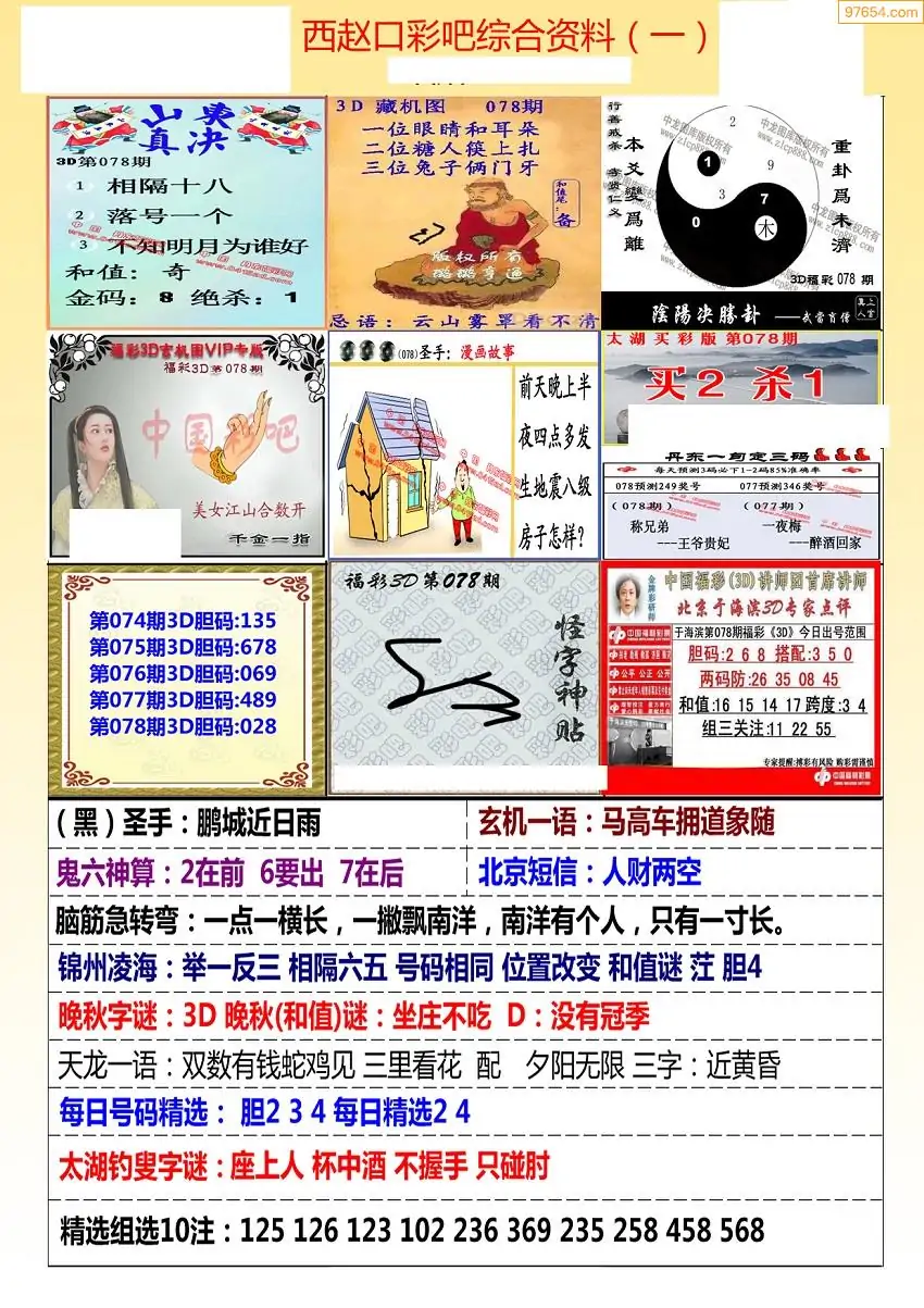 福彩3D078期天牛彩吧套图整合总汇