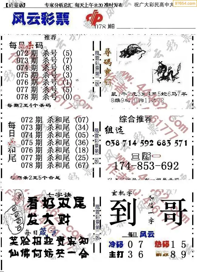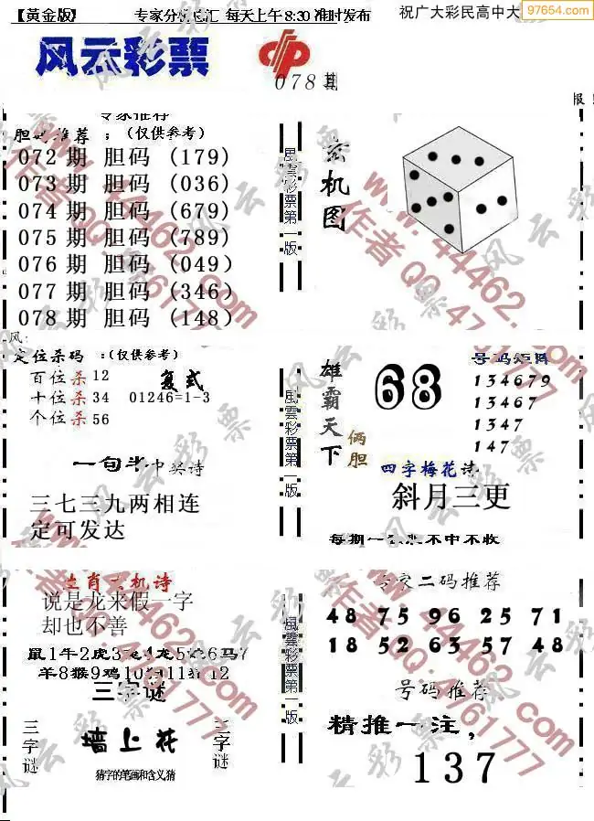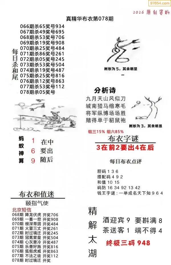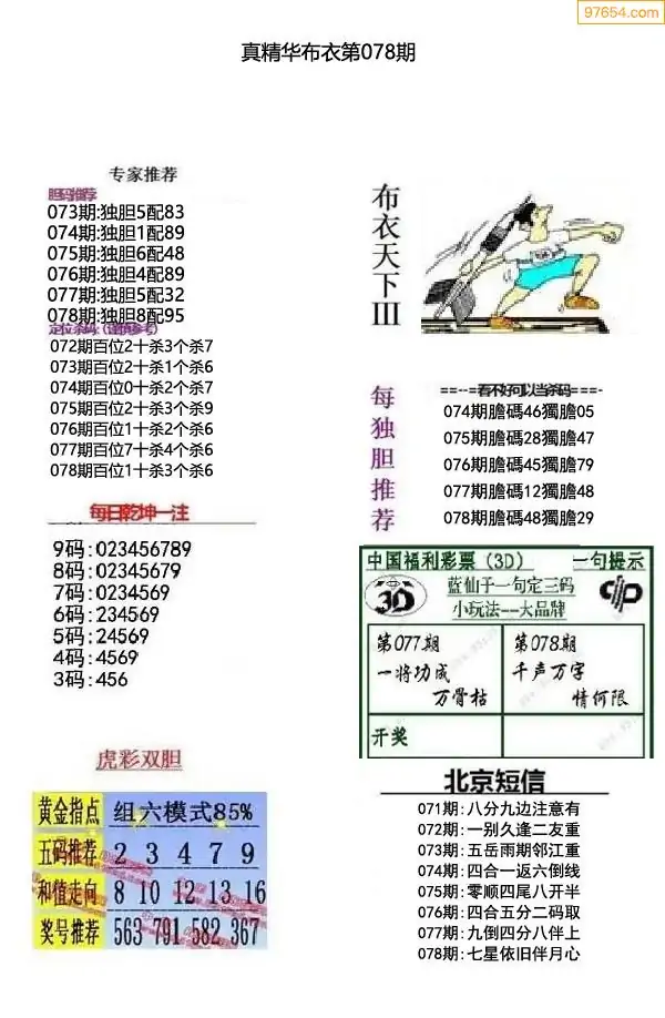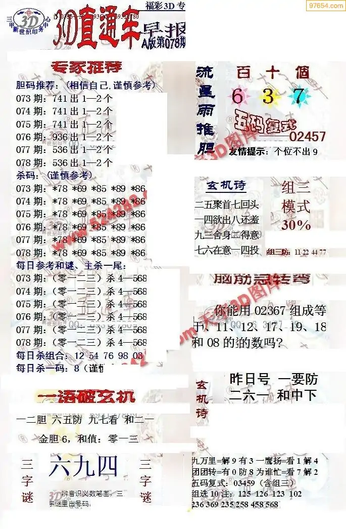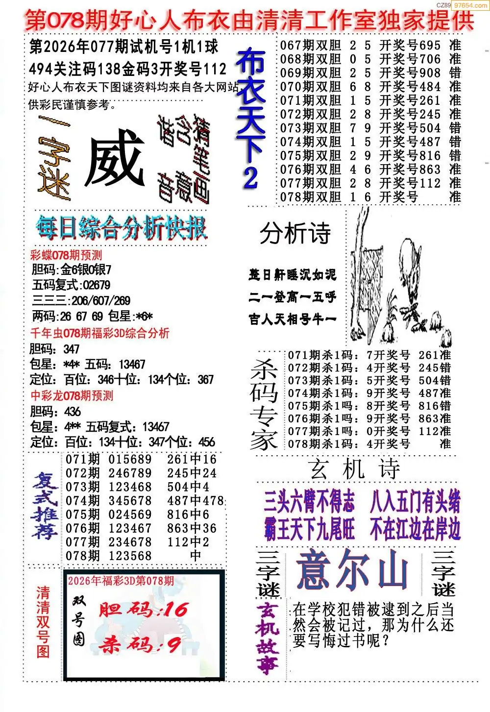 (8)26年078期今日3d各类彩报汇总