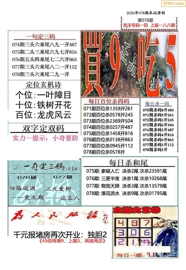 (9)26年078期当期全站杀号定胆图
