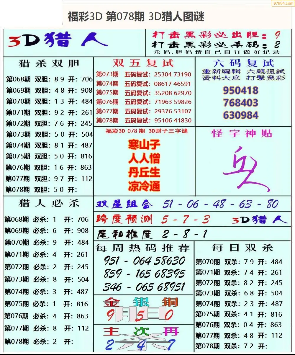 (2)26年077期本期3d图迷汇总_福彩3D图谜总汇图