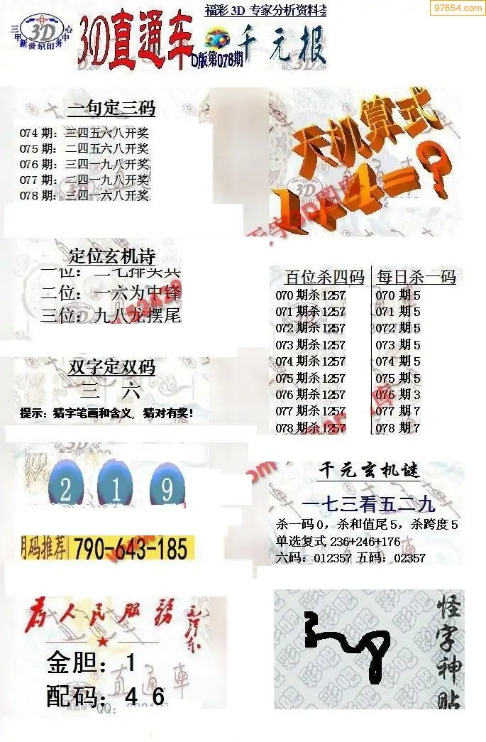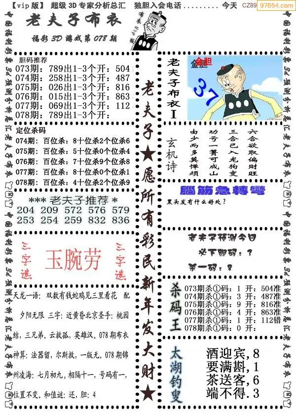 (3)2026078期3D预测总汇全图_福彩3d图谜字谜总汇