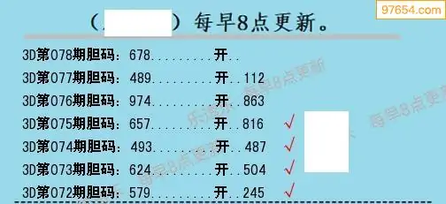 078期97654本站收集胆码出号预测