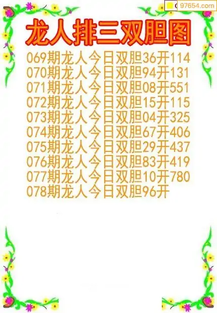26078期龙人排列3双胆图