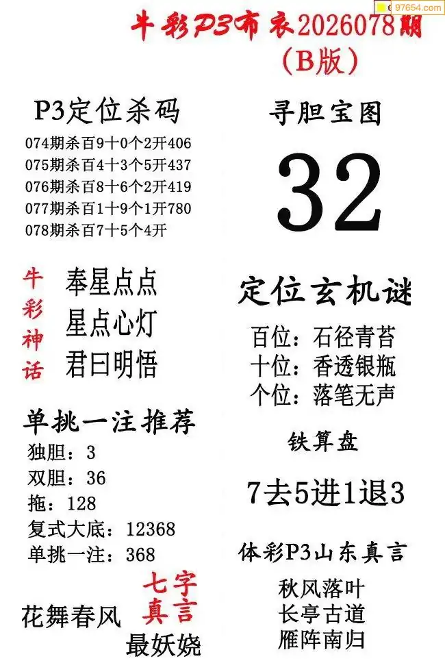 2026078期彩友图迷汇总_体彩排列三字谜图谜总汇最新更新