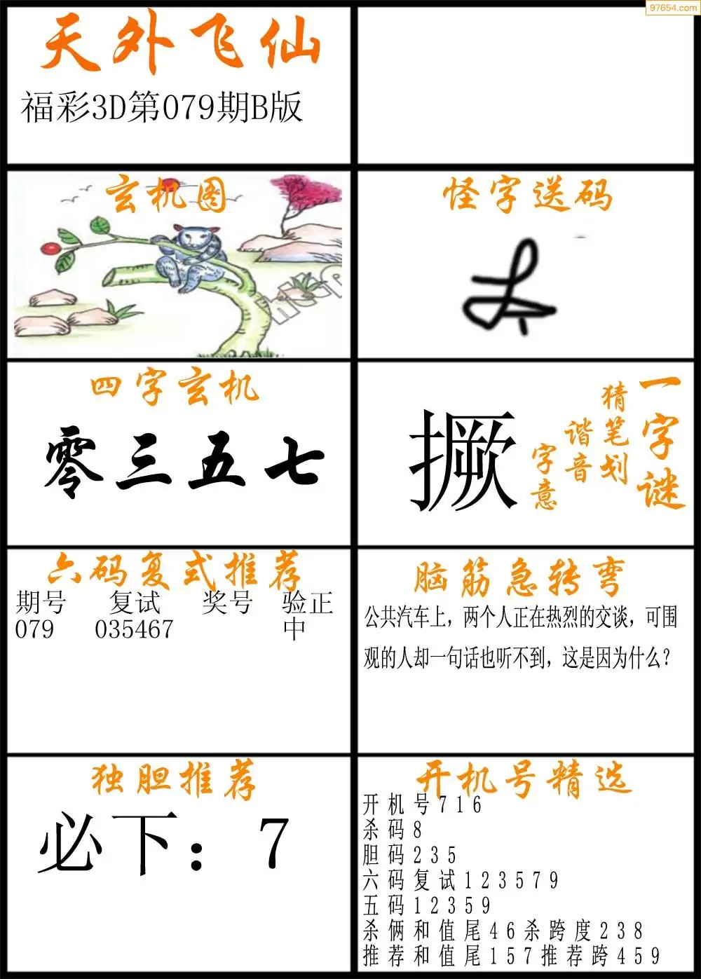 079期福彩3d天外飞仙B版