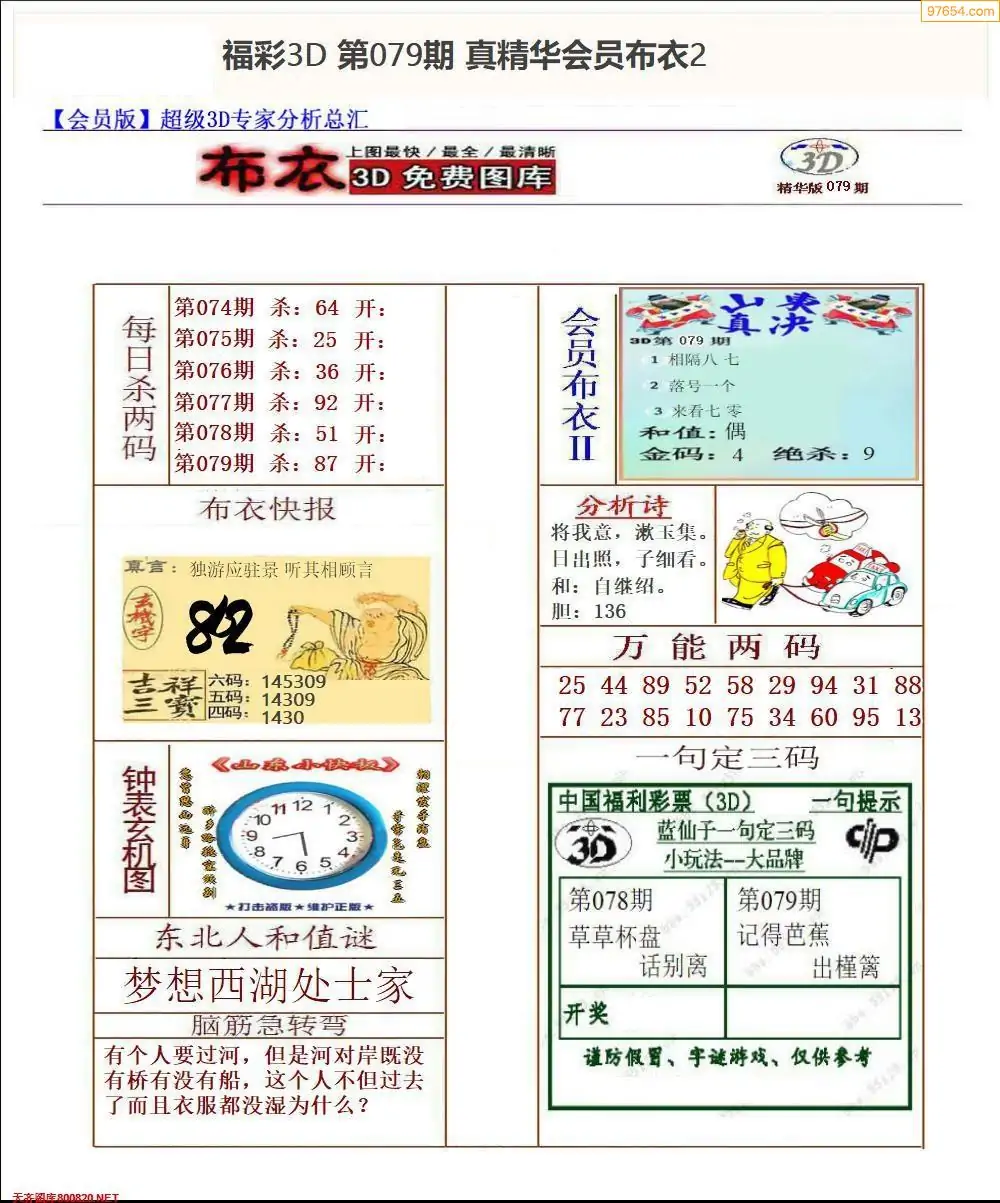 2026079期会员布衣3d图库